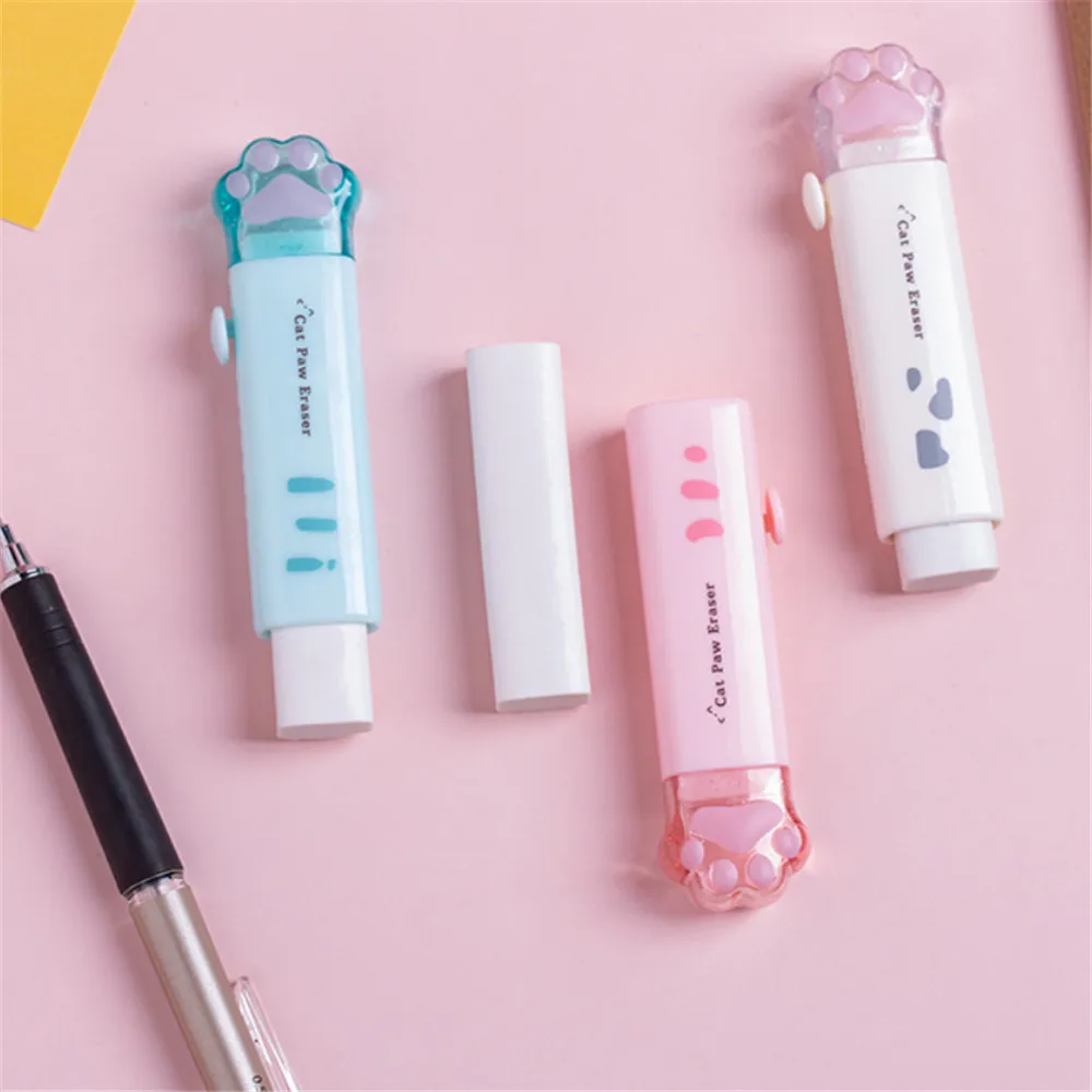Милые ластики в виде кошачьей лапы, кавайные канцелярские принадлежности, резиновые ластики с нажимом, чистые корректирующие инструменты, детские игрушки, школьные и офисные принадлежности