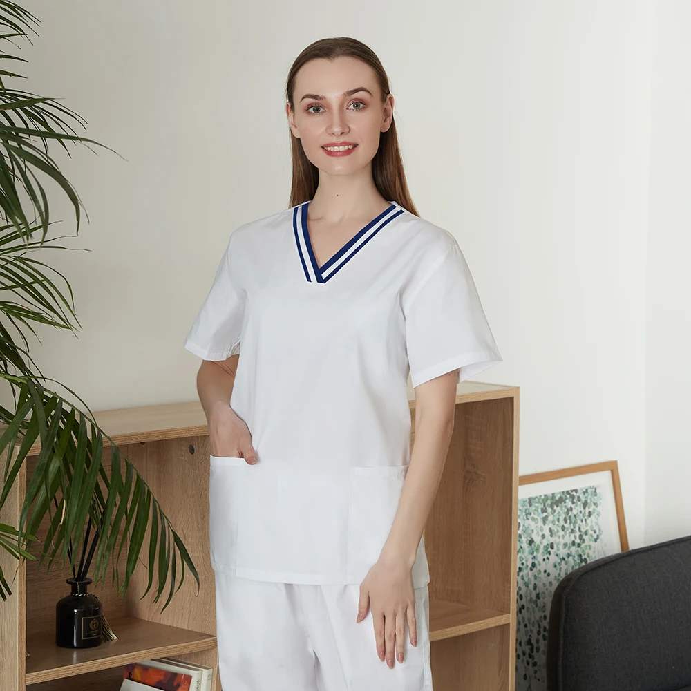 Костюм для салона красоты, с коротким рукавом и V-образным вырезом