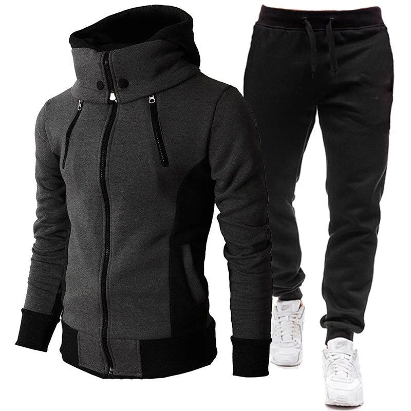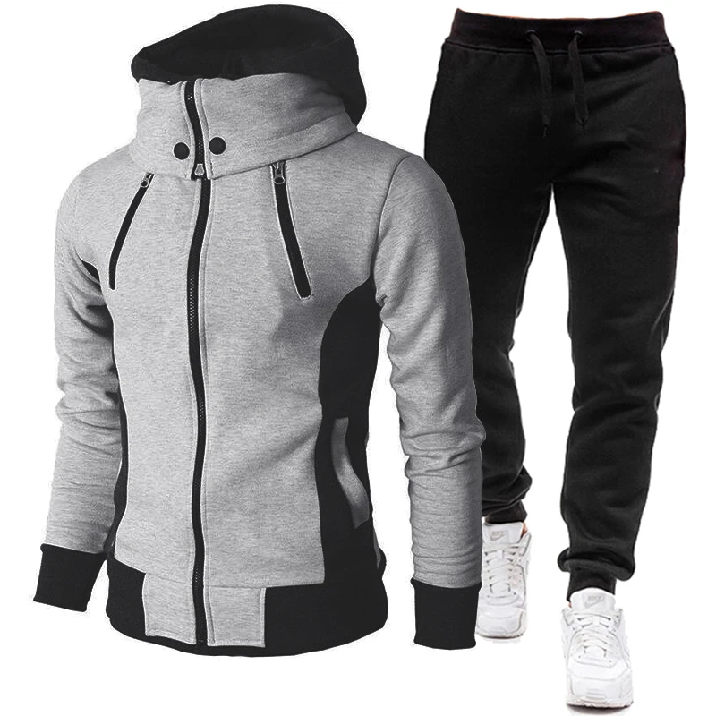 Новинка ОсеньЗима 2021 мужской спортивный костюм Повседневная Толстовка свитшот на молнии из двух предметов куртка + брюки мужской костюм + Размер S