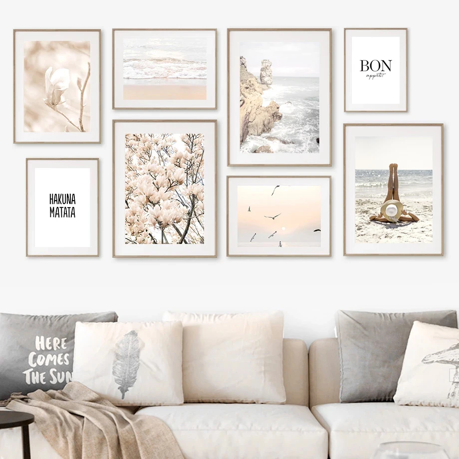 Декоративные плакаты с изображением прибрежного песчаного пляжа, спальни, цветочные постеры и принты для украшения гостиной