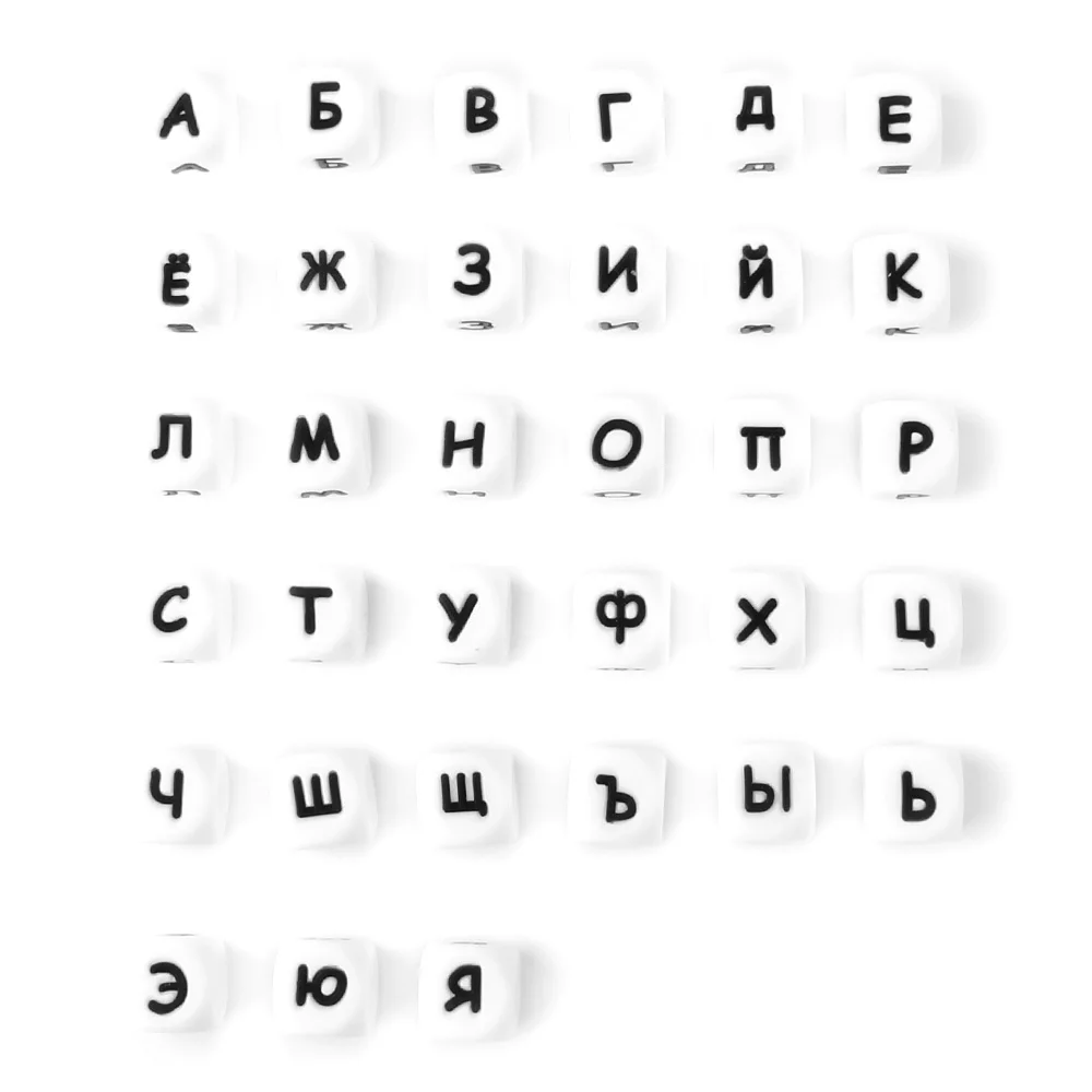 10 шт 12 мм Силиконовые Бусины русские буквы Детские Прорезыватели для зубов персонализированные имя пищевого класса DIY Детские Прорезыватели ожерелье аксессуары