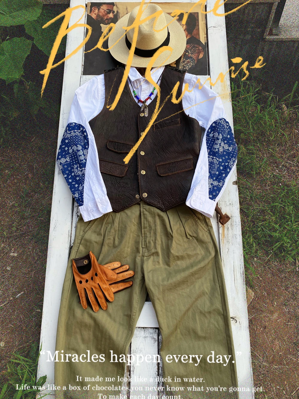 Мужской жилет из натуральной бычьей кожи, с латунными пуговицами