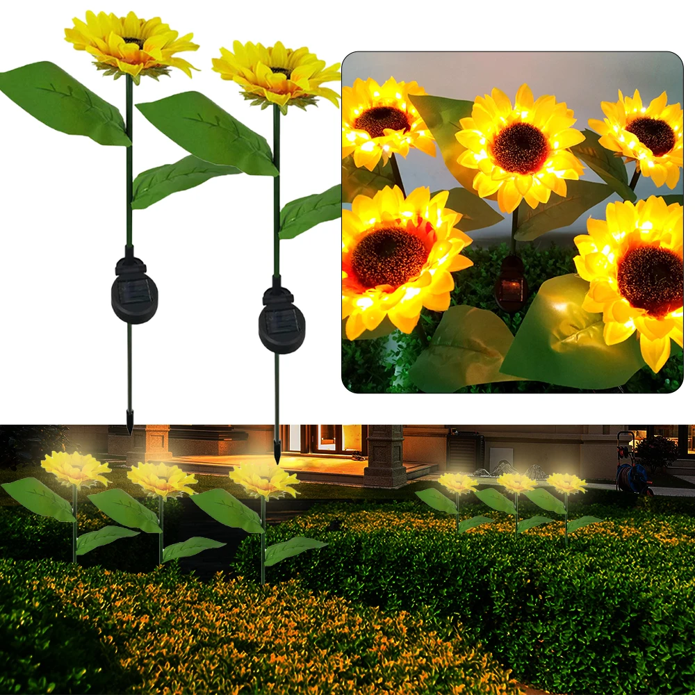 Светильник для газона, 2 шт., водонепроницаемый, в виде подсолнуха
