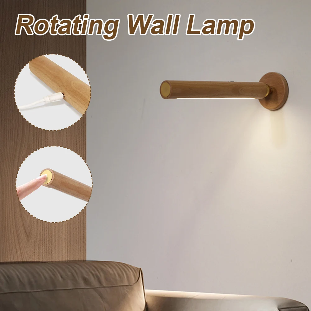 Деревянный комнатный настенный светильник с USB-зарядкой, вращающийся на 360 , регулируемая яркость, сенсорный выключатель, бра, настенный светильник для коридора, ночник