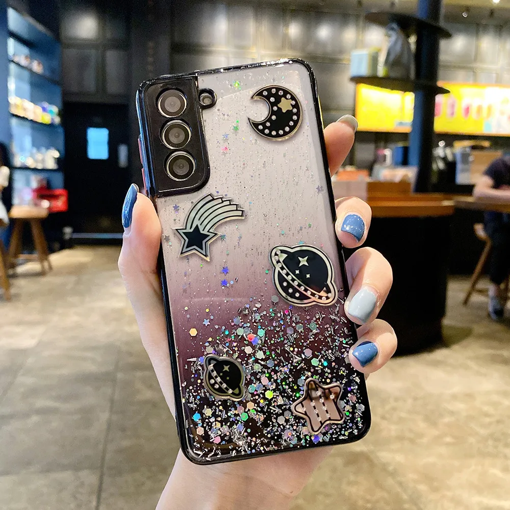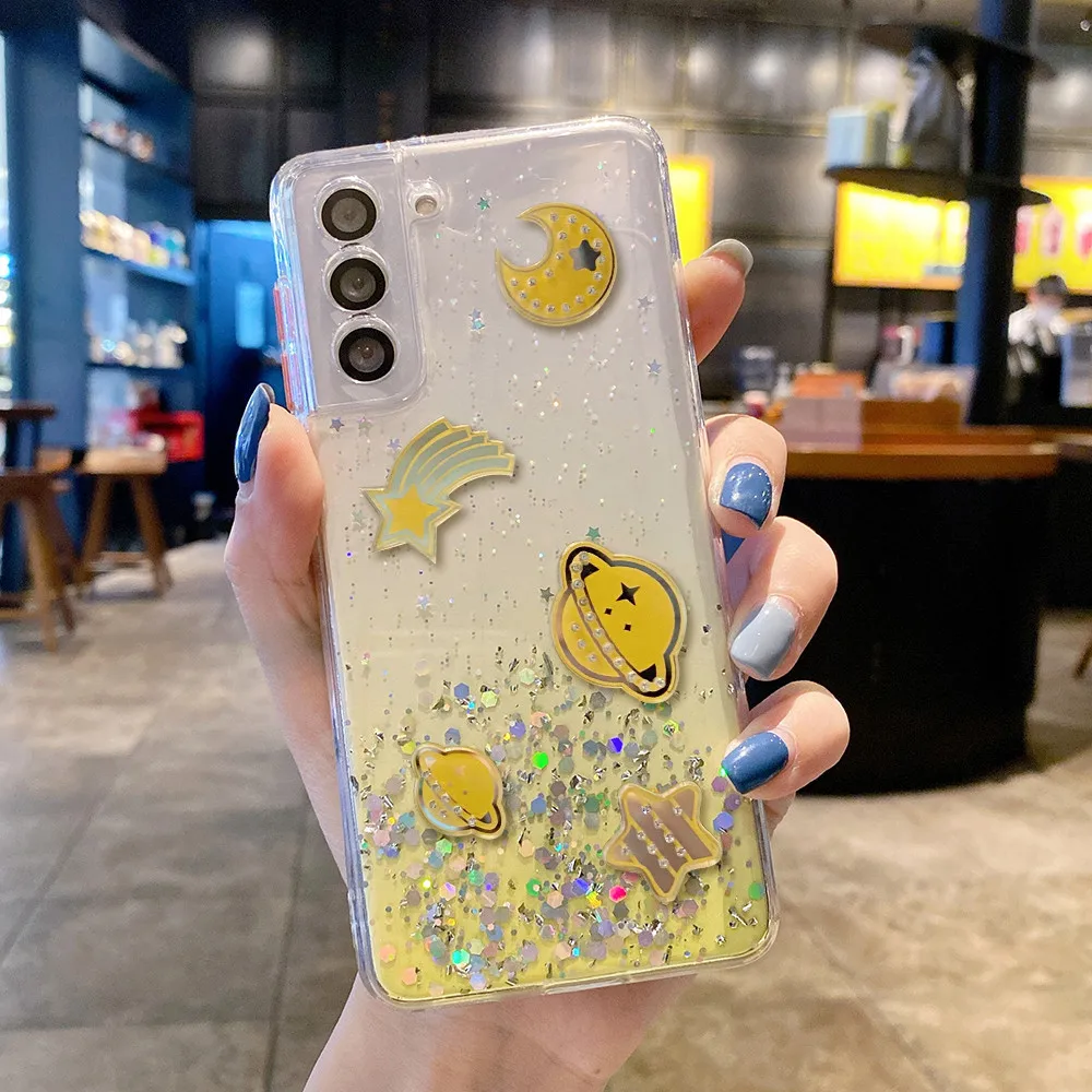 ХарактеристикиLuxury Glitter Clear Planet Candy Color Frame Silicone Phone Case