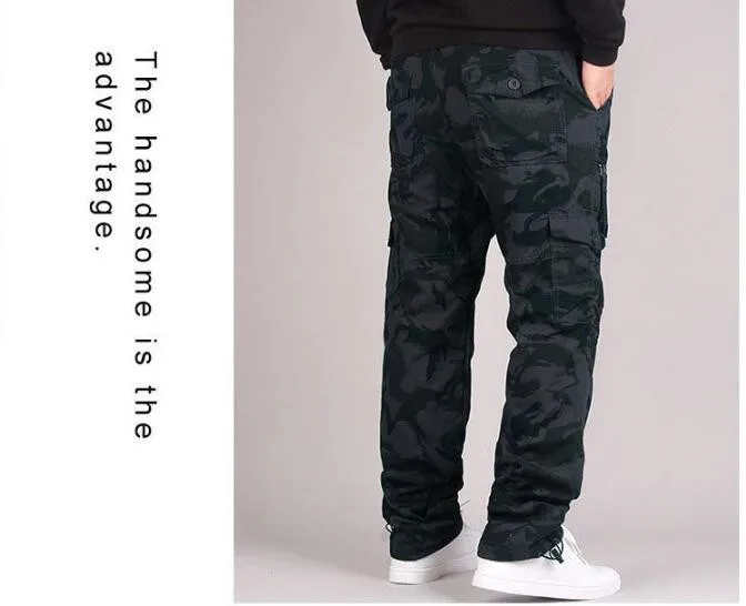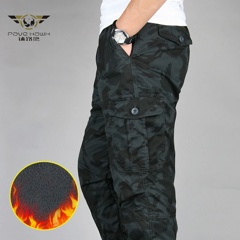 Мужские тактические брюки-карго, зимние камуфляжные, на флисе, длинные, свободные, повседневные, мешковатые штаны для бега