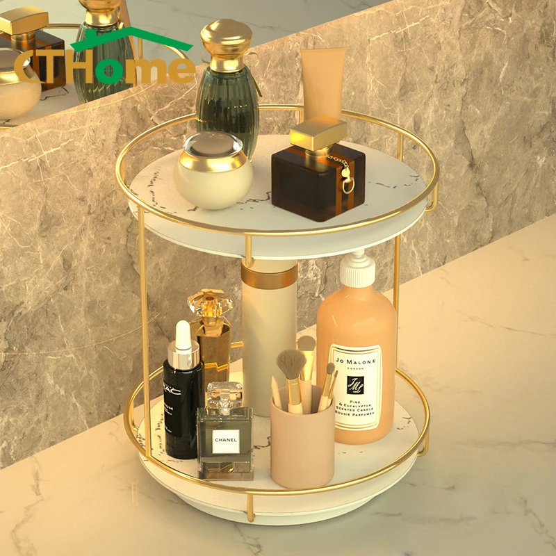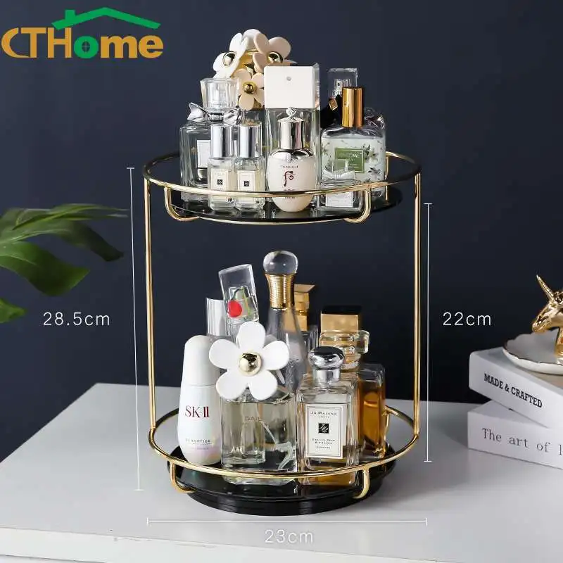 Скандинавская Мода 360 Вращающаяся настольная коробка для хранения косметики продукты для ухода за кожей духов 2 уровня поднос туалетный столик полка для отделки