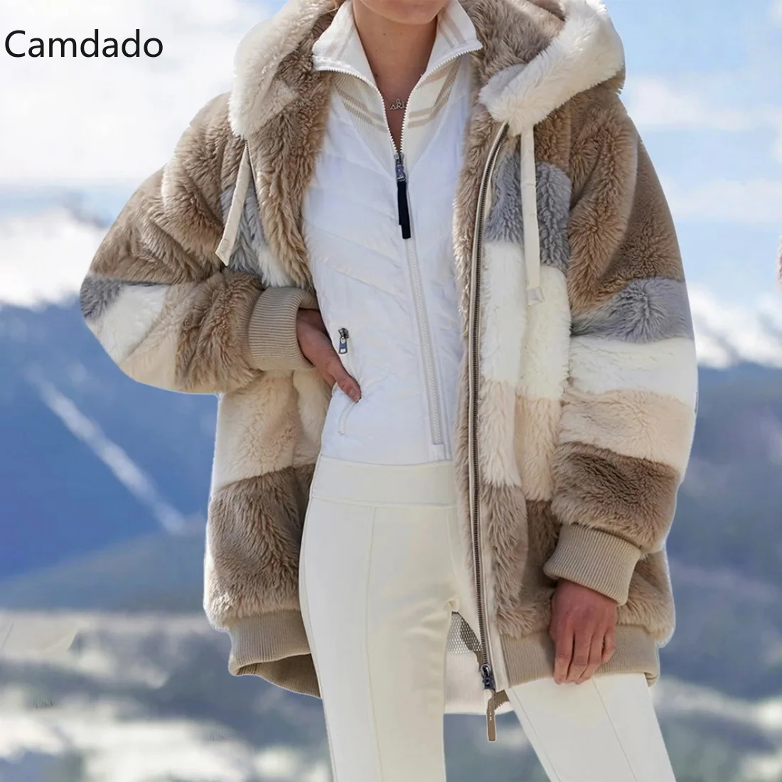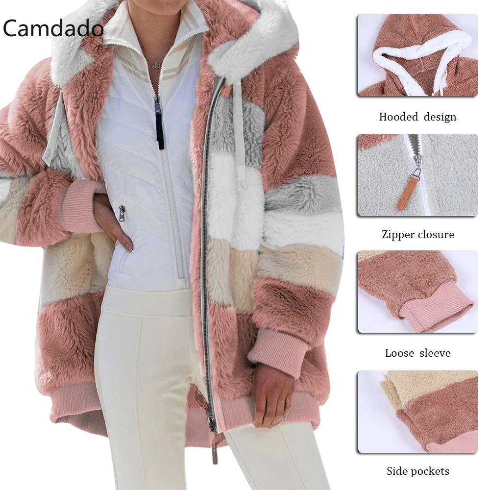 Женская зимняя куртка с капюшоном, свободная хлопковая куртка с длинным рукавом и карманами на молнии