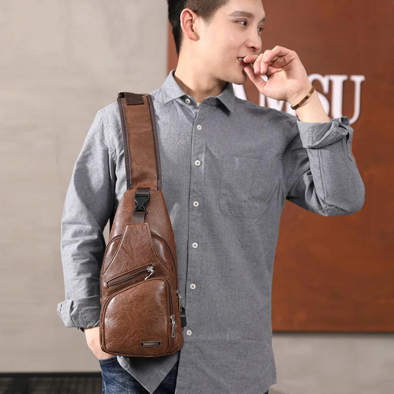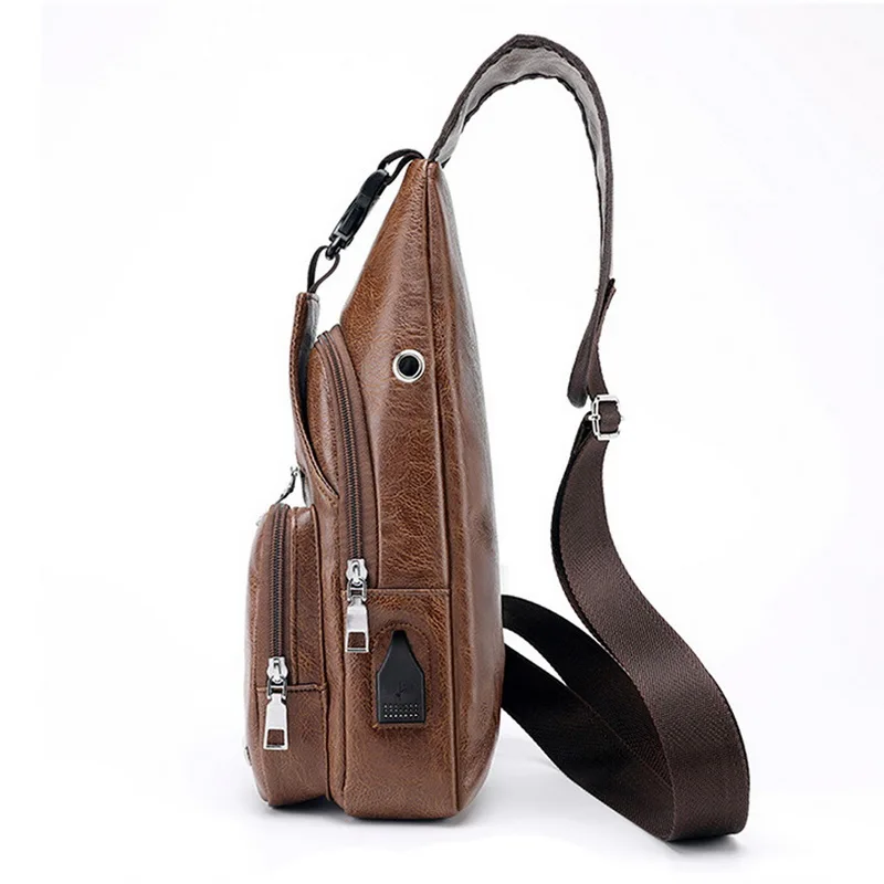 Нагрудная из искусственной кожи для мужчин, сумка на плечо с USB-за...
