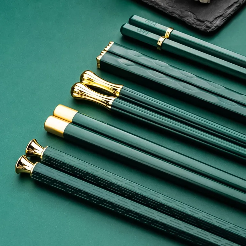 Особенности:<Нескользящие: эти палочки для еды имеют противоскользящий дизайн. Усиленный нескользящий наконечник для палочек делает палочки для еды легче захватывать еду и лучше не скользить. Палочки для еды с текстурированным корпусом удобнее в использовании и удобнее держать под рукой. Палочки для еды не скатываются на руку.<Безопасный Материал: Изготовлен из высококачественного сплава, износостойкий, высокотемпературный, нелегко сломать. Они не будут скрывать грязь<Легко чистить: они не скрывают грязь, не впитывают воду, не впитывают влагу, легко и удобно моются.<Прочный: многоразовые палочки для еды, которые не беспокоятся о повреждении во время использования или чистки<Легко чистить: можно чистить холодной водой или теплой водой, рекомендуется ручная стирка, протирать тканью после очистки и дезинфицировать их стерилизованным шкафом.<Широко используется: обязательный предмет для еды типичной азиатской пищи, такой как суши, рамен, горячий горшок, кунг ПАО курица, пельменей, рис и другие продукты питания.Конечно, вы также можете использовать его, чтобы сделать ежедневную еду как спагетти.<Идеальный подарок: идеальный подарок для ваших друзей или семьи на любой случай.