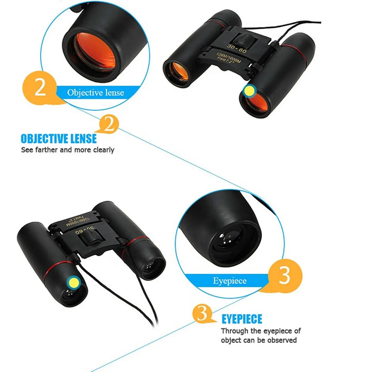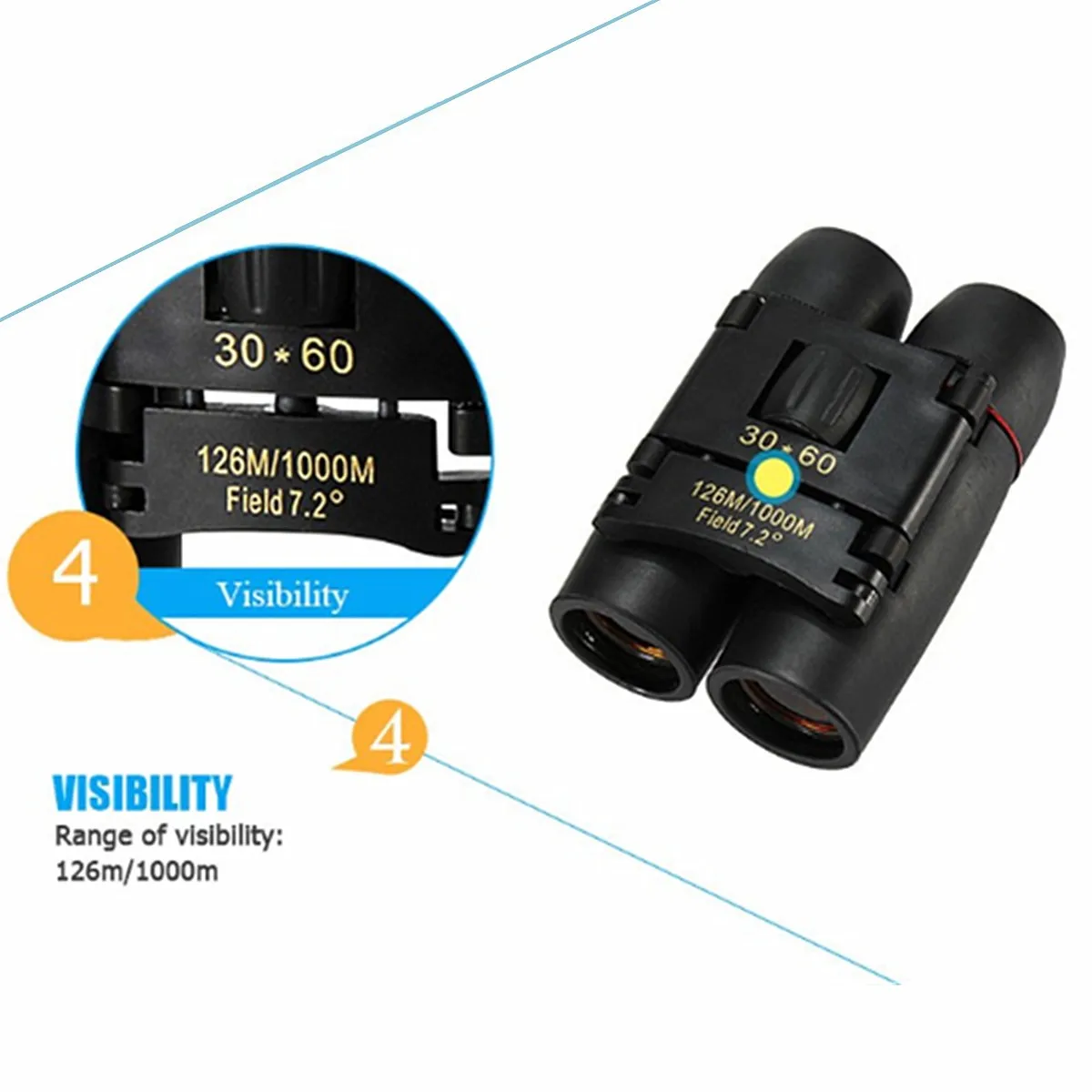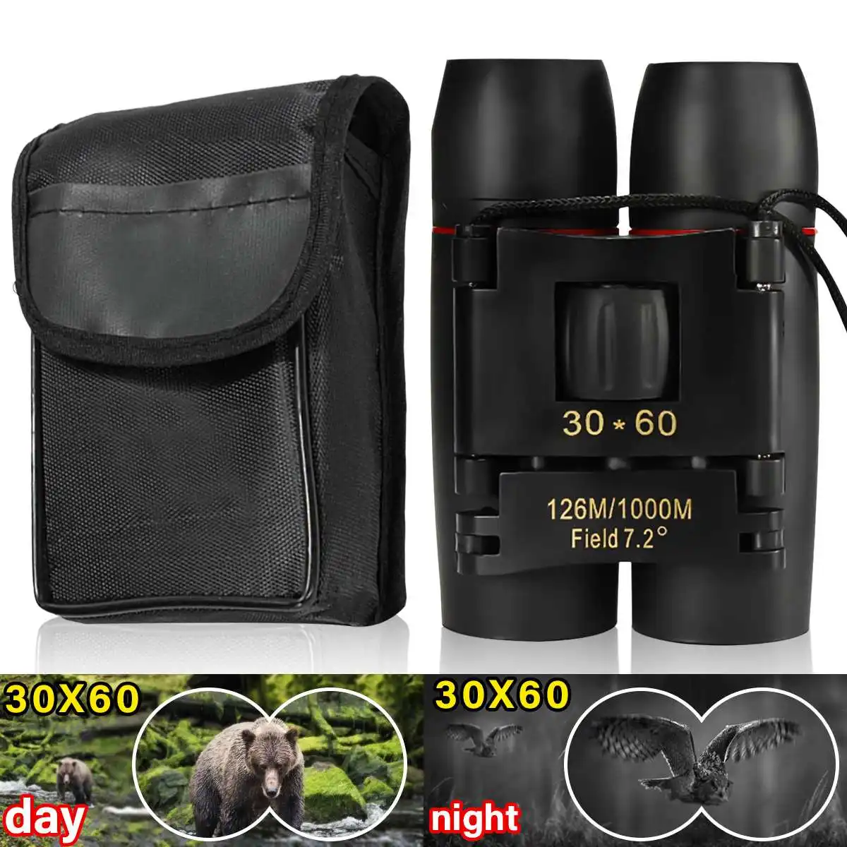 Портативный Бинокль дневного и ночного видения 30x6 0, уличный точечный труба, складной Телескоп, Бинокль для кемпинга и путешествий с сумкой 126 м1000 м