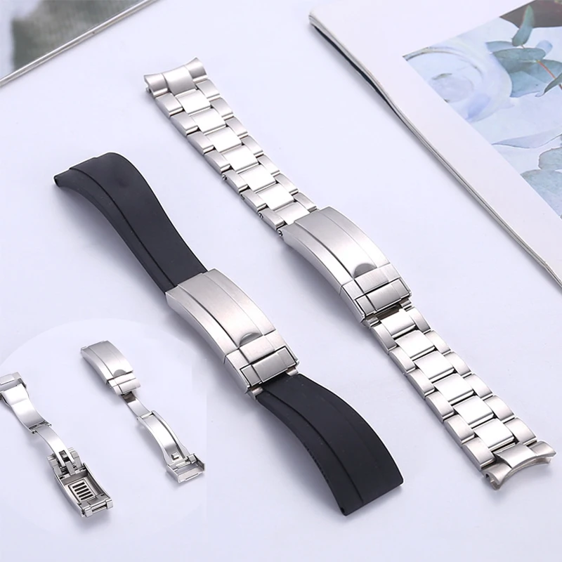 Ремешок для часов, силиконовый и стальной браслет с тонкой регулировкой, с пряжкой, аксессуары для часов ROLEX, 20 мм
