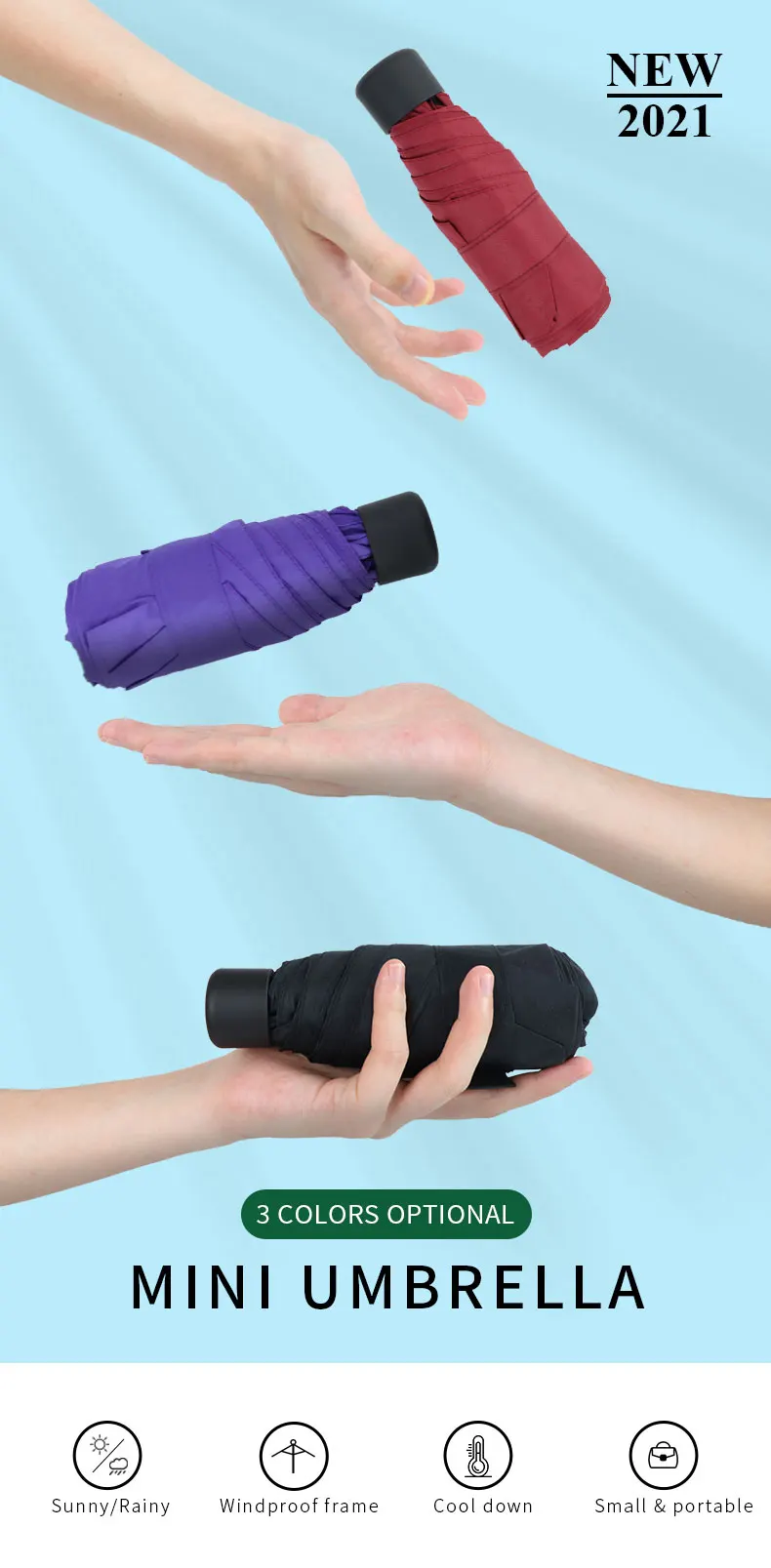 Мини-зонт складной женский компактный с защитой от УФ-лучей, 180 г