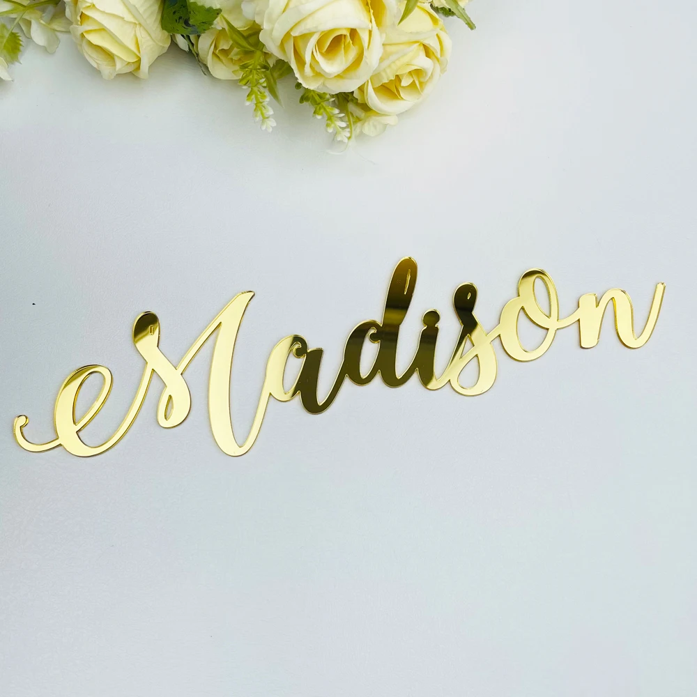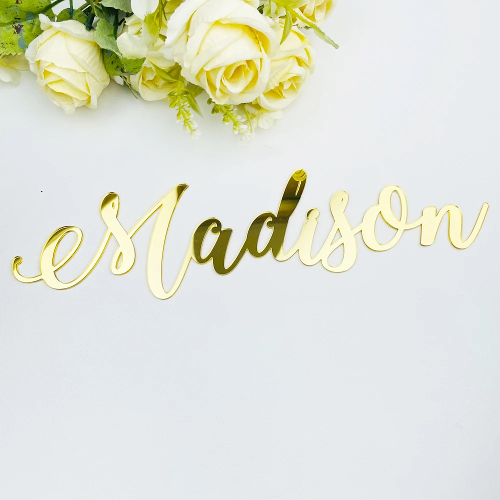 Золотистая зеркальная табличка с именем, акриловая, настенная, деревянная, под заказ, название для детской комнаты, свадьбы, дня рождения, вечеринки для будущей мамы, Подарочный знак магазина