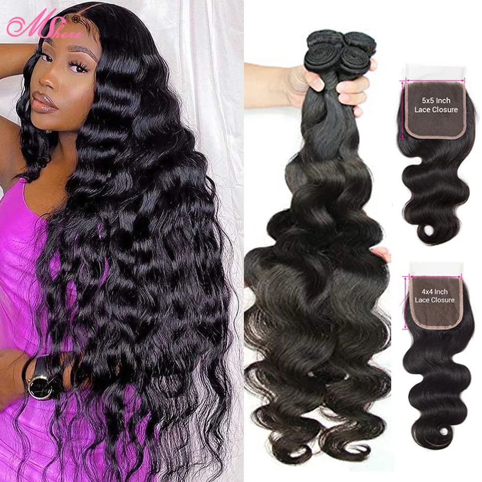 Волнистые человеческие волосы Mshere, пучки с застежкой, 4x4 5x5, К...