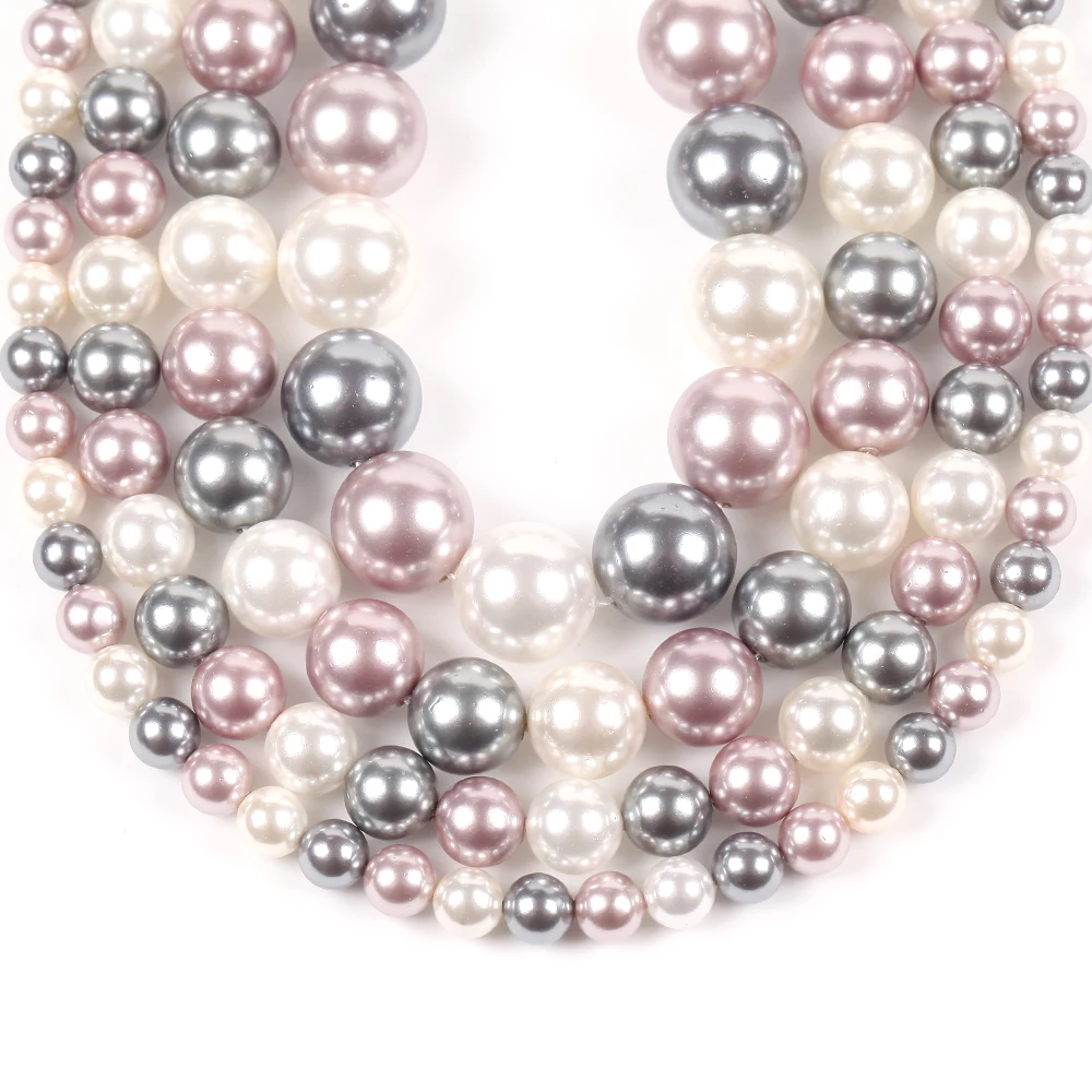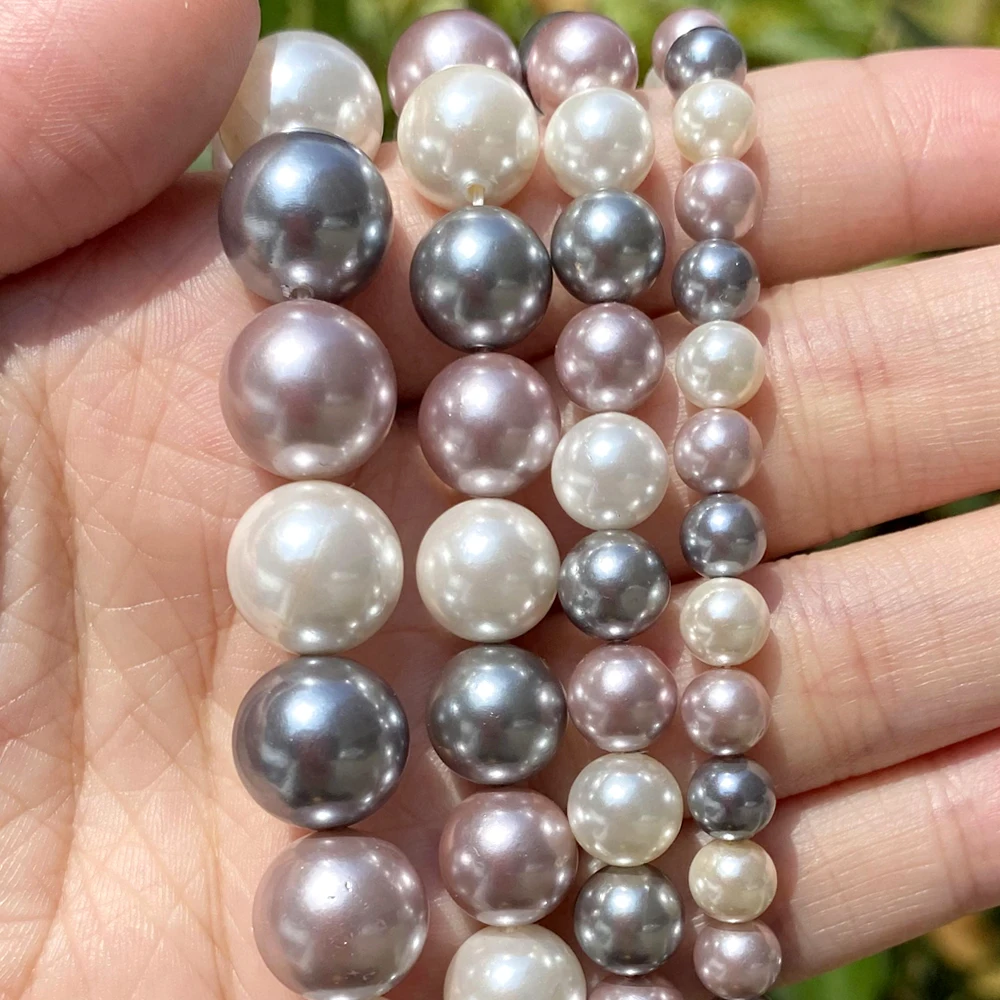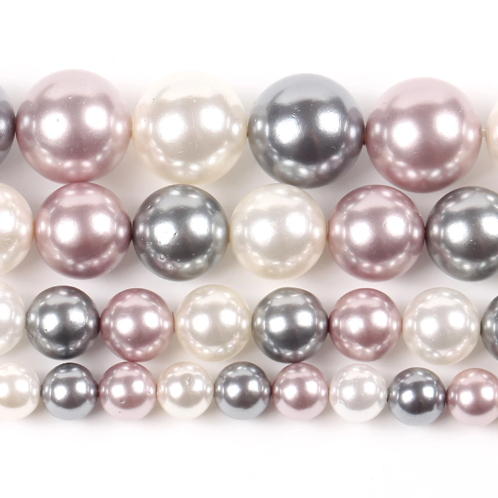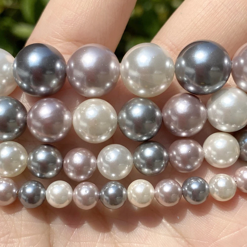 Натуральная ракушка, 681012 мм, белогосерого цвета, розовая раковина, жемчужина, круглые свободные бусины, аксессуары для ожерелья, браслета, для изготовления ювелирных изделий