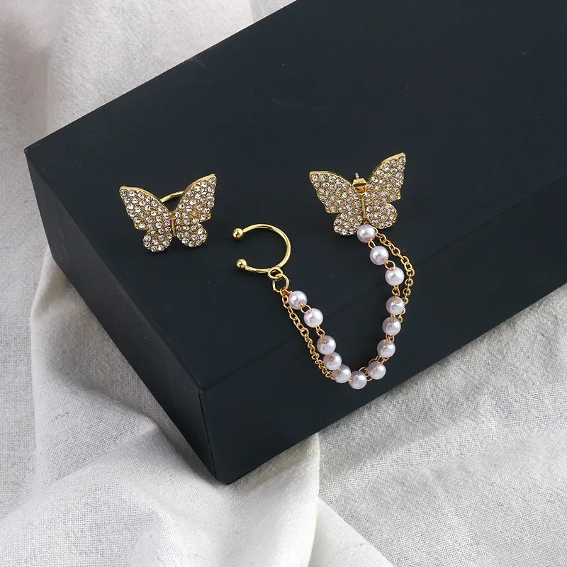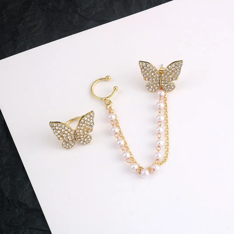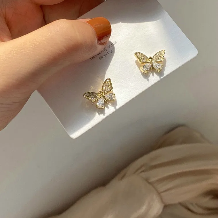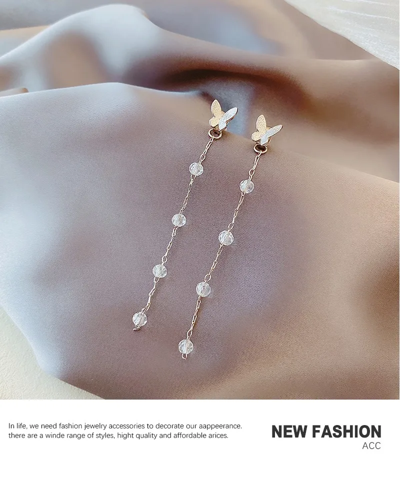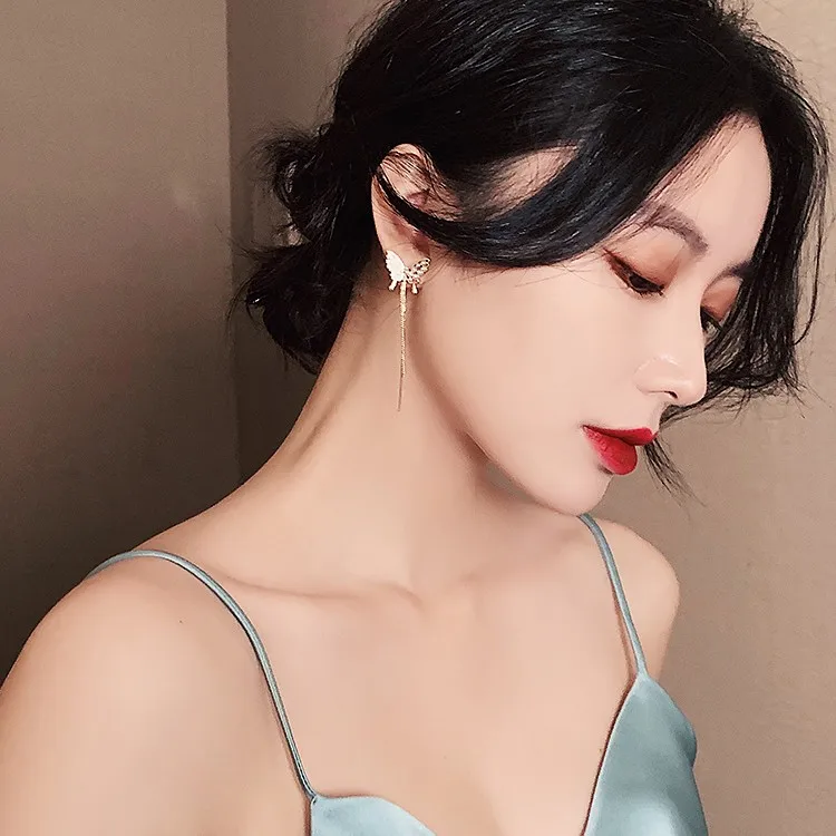 Корейские элегантные милые серьги-гвоздики Стразы с бабочками для женщин и девушек Модные металлические серьги с цепочкой ювелирные изделия серьги