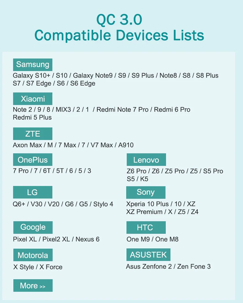 Feature6Quick Charge 3.0 18W QC 3.0 4.0