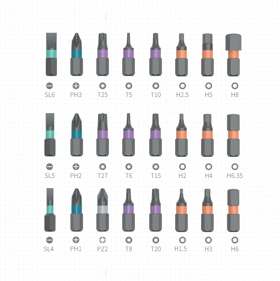 * Многофункциональный Трещоточный ключ, отвертка, можно изменить по желанию, чтобы адаптироваться к большему количеству случаев.* 24 шт промышленный класс S2 хромированные молибденовые отвертки из легированной стали, с непрерывной термообработкой. Высокоточное интегрированное формование с ЧПУ, карбюрирование термической переработки, срок службы промышленного класса, жесткий, но не хрупкий, полный прочности.* 5 категорий головок отверток, удовлетворяют потребности профессионального использования, домашней жизни, работы, DIY, технического обслуживания.* 6,2 градусов ratchet труда • Большой энергосберегающий ЖК-дисплей, 58 зуб положительный и отрицательный поворот ratchet структура, за исключением 80% усилие* Можно использовать бытовую мебель-Храповик* Домашняя техника для верховой езды-можно использовать храповую деформацию* DIY разборка-используйте отвертку* Ковка прессованный Супер жесткий алюминиевый сплав, обычная сталь прочность, 1/2 легкий вес* Комфортные ощущения, долго не устают* Легко узнаваемый дизайн цветного кольца, доступ к головкам отвертки ясен
