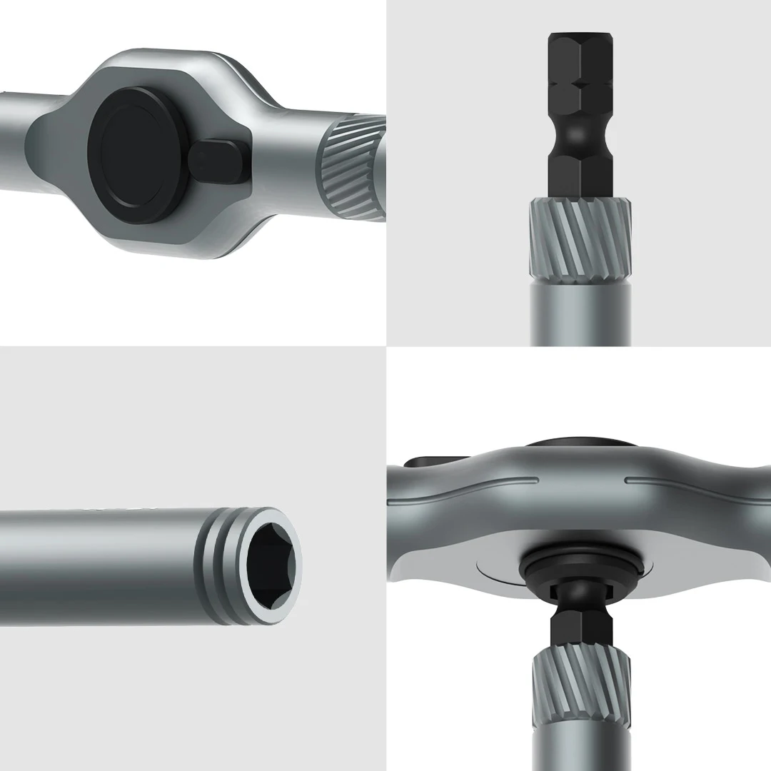 Многофункциональный Трещоточный ключ и отвертка могут быть изменены по желанию, чтобы адаптироваться к большему количеству случаев.