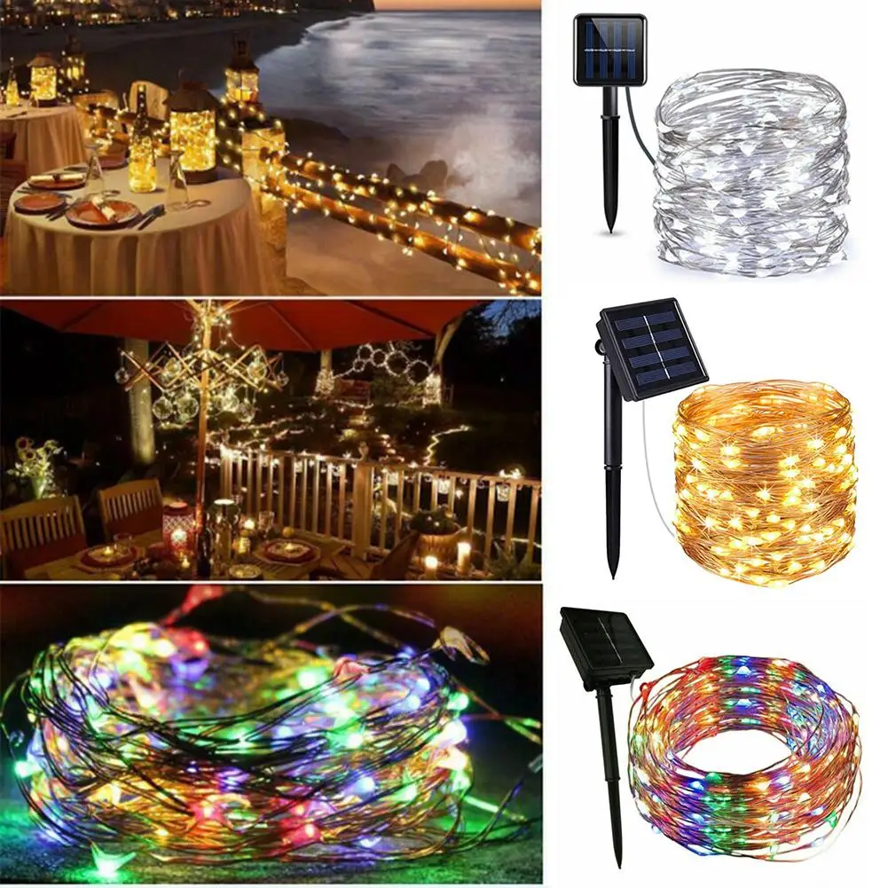 Уличная светодиодная гирлянда на солнечной батарее, 60100 светодиодов, Сказочная Праздничная Рождественская гирлянда для вечеринки, водонепроницаемый садовый светильник на солнечной батарее, 610 м