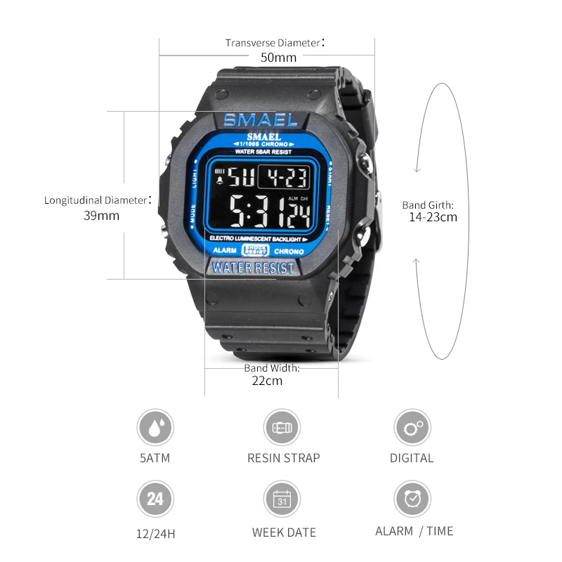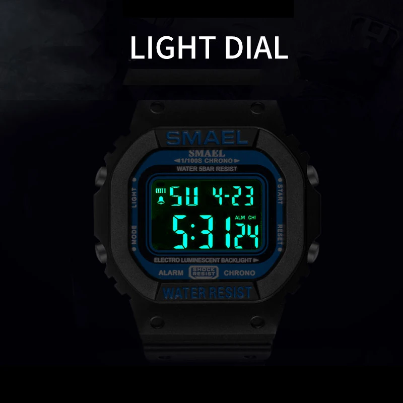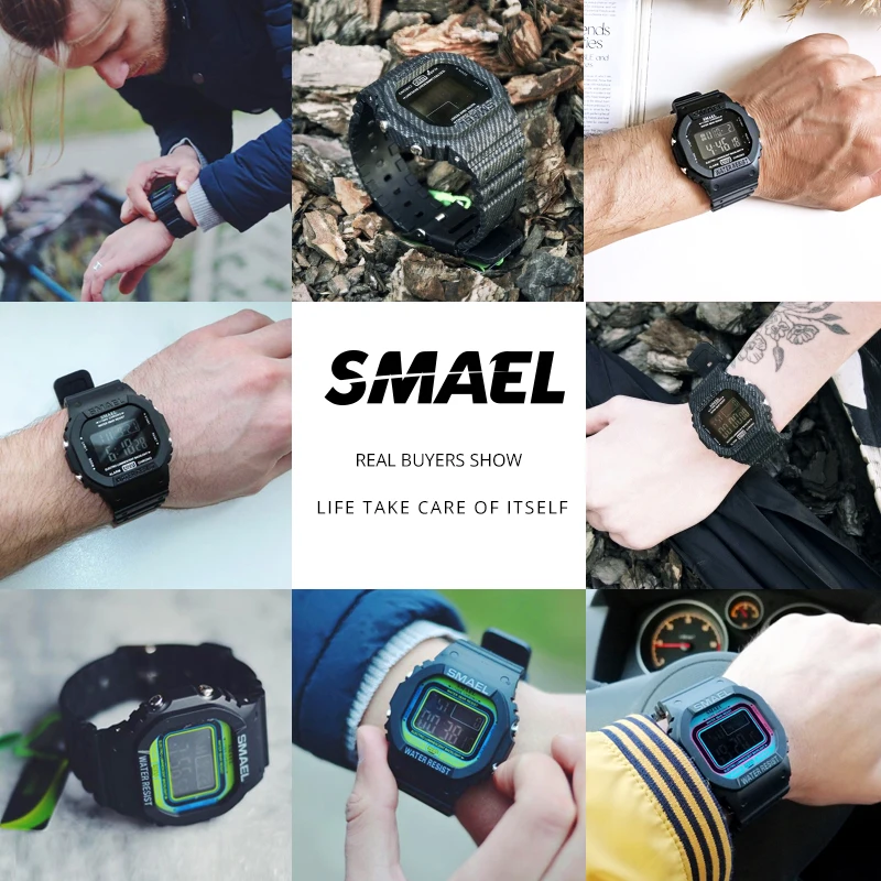 SMAEL спортивные светодиодные цифровые часы спортивные мужские часы водонепроницаемые цифровые часы квадратные 1801 мужские часы подарок мужские спортивные часы