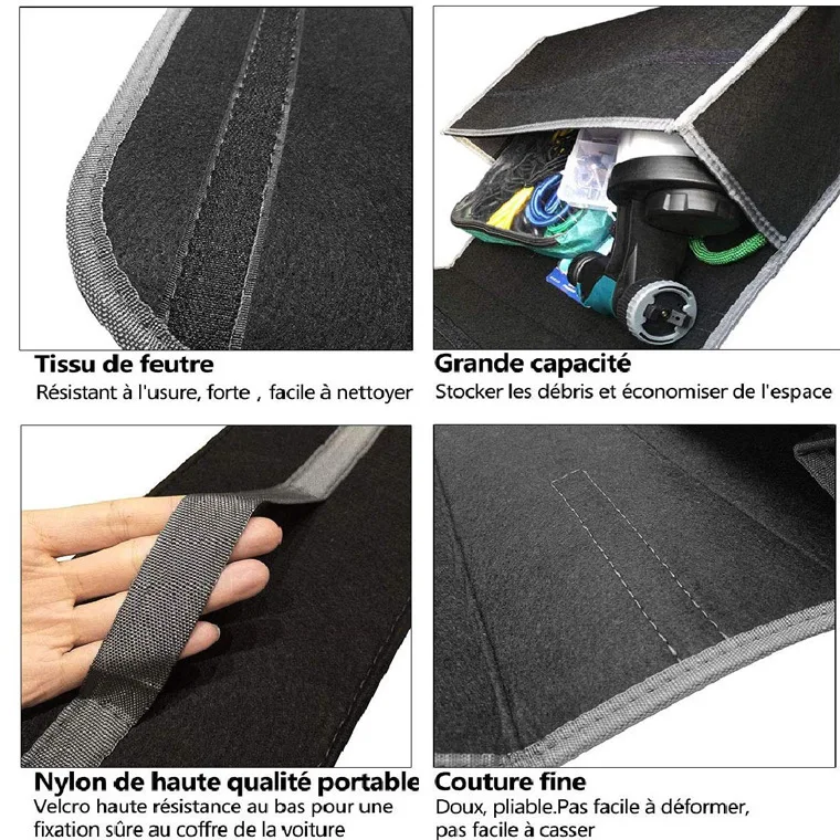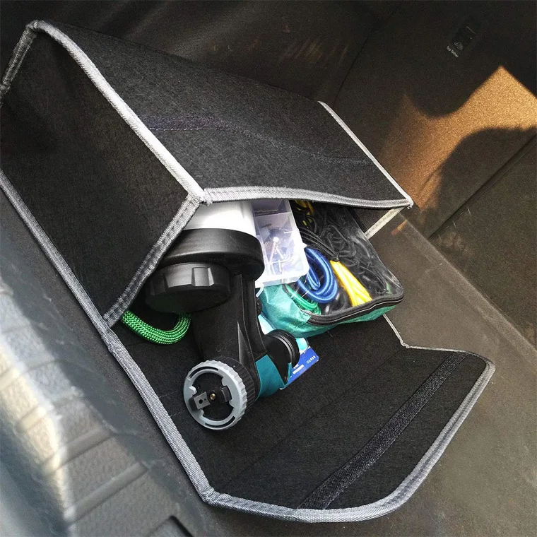 Изготовлен из войлочной ткани, прочный и анти-грязный.-Фиксированная форма, сделает ваш багажник более чистым и аккуратным.-Высококачественная складная коробка, после сложения, может сэкономить место.-Универсальный размер, подходит для всех моделей автомобилей.-Материал прочный, имеет длительный срок службы.-Он может использоваться в автомобиле, дома и на открытом воздухе.