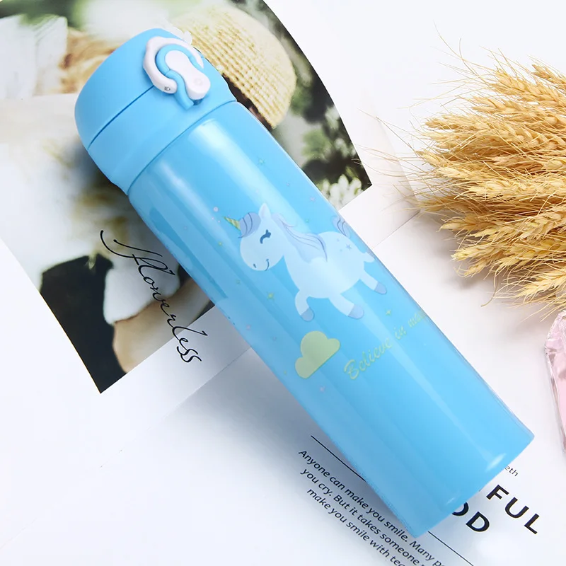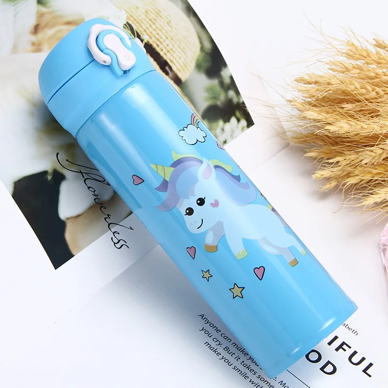 350500 мл Спортивная бутылка для воды для детей, термос с единорогом, портативная посуда для напитков, школьная бутылка для воды с соломинкой, герметичная чашка