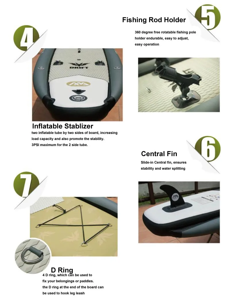 Набор надувных досок для рыбалки, доска для серфинга, рыбалки, с насосом, плавниками, максимальная нагрузка 130 кг