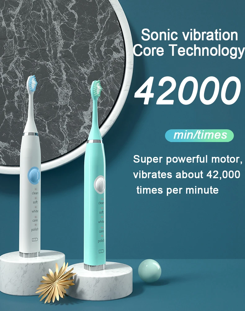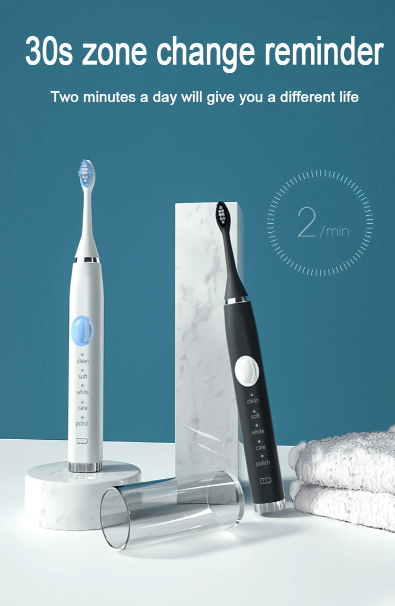 Зубная щетка электрическая ультразвуковая, IPX7, быстрая зарядка от USB