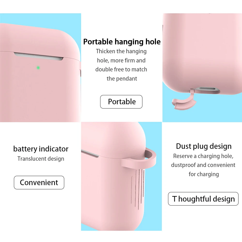 Функция: Airpods 1/2 защитный чехолЦвет: разные цвета на выборМатериал: высококачественный силиконРазмер: 55*47*28 ммХарактеристики: индикатор заряда батареи может отображатьсяТолщина: 1,5 мм