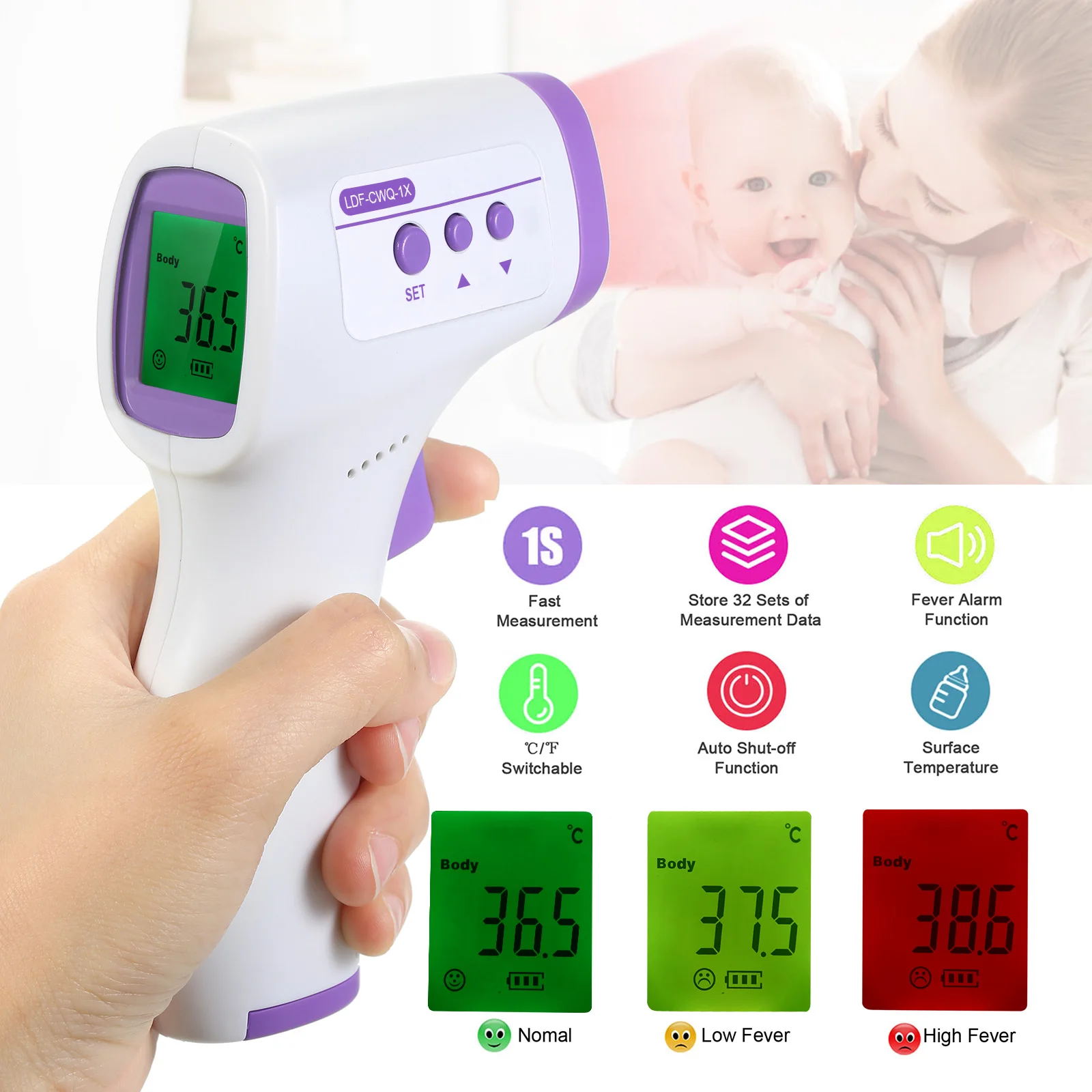 ТермометрОсобенности:Высокоточный инфракрасный датчик, стабильный и надежный, для безопасного использования, обеспечивает точные измерения, небольшие погрешности.Температура сигнализации может быть установлена и один раз превышена, он выдаст звуковой сигнал. По умолчанию температура будильника составляет 38 ℃.С большой ЖК-дисплей с цифровым дисплеем с 3-цветной высокой яркости подсветки может четко показывать температуру и соотношение цена/качество.Вы можете выбрать режим температуры поверхности объекта и режим измерения температуры тела в соответствии с вашими потребностями.Направляйтесь на лоб, бесконтактно, нажмите кнопку измерения, и ЖК-дисплей покажет измеренную в настоящее время температуру.Автоматическое хранение 32 наборов данных измерений, вы можете просматривать данные по предыдущим измерениям для легкого анализа и сравнения.Компактный дизайн, легкий и портативный, удобная ручка, легко носить с собой, удобно использовать.Подходит для детей, детей и взрослых и может широко использоваться в школе, офисе, дома и т. д.Примечание: аккумуляторы в комплект не входят.Спецификация:Метод измерения: БесконтактныйРасстояние измерения: 3-5 смЕдиница измерения: Цельсия (℃), Фаренгейт (℉)Диапазон измерений: 32 ℃-42,9 ℃ (89,6 ℉-109,2 ℉)Макс. Допустимая погрешность: ± 0,3 ℃/0,54 ℉ в диапазоне 35 ℃-42 ℃Разрешение дисплея: 0,1 ℃/0,1 ℉Рабочая среда: 16 ℃-35 ℃ (60,8 ℉-95 ℉), влажность ≤ 85%Среда хранения при транспортировке: -20 ℃-50 ℃ (-4 ℉-131 ℉), влажность ≤ 90%Питание: 3 в пост. Тока (2 щелочные батареи AAA не входят в комплект)Подсветка: ПодсветкаАвтоматическое выключение: 30 сМатериал: АБС + ПоликарбонатРазмер товара: 15,0*8,5*4,3 см/5,90*3,34 * 1.69inВес изделия: 96g/3,38 ozРазмер упаковки: 16,0*8,7*4,5 см/6,30*3,42 * 1.77inВес упаковки: 119 г/4,19 унцийВ комплект входит:1 * термометр1 * Руководство пользователя (на английском языке)И уровня кислорода в кровиОсобенности:Параметры дисплея: кровно-кислородное значение SPO2, значение пульса, диаграмма формы импульса.Четкий L-ED Экран дисплея: принимается четкий и точный L-ED красочный экран дисплея.Режим отображения: вверх и вниз направления удовлетворяют ваши различные потребности.Энергосбережение и Экологичность: низкое потребление pow-er, и он работает от 2 * AAA b-atteries может прослужить в течение долгих рабочих часов(B-atteries не включены).Автоматическое выключение: Когда сигнал не генерируется, продукт автоматически выключится через 8 секунд.Дружественный к потреблению: интегрированный с зондом крови-кислорода и модулем дисплея обработки, продукт прост в использовании, низкое потребление pow-er, небольшой размер, легкий вес и легко носить с собой.Технические характеристики:Тип товара: уровня кислорода в кровиМощность: <30mAМатериал: АБС + ПоликарбонатЦвет товара: белыйИзмерение насыщения крови кислородом ran-ge: 70% ~ 99%Точность измерения: ± 2% в пределах 70%-99%Отображение частоты пульса: 30-240 уд/мин, ± 1% или ± 1 уд/минАвтоматическое выключение: без вставки пальца, 8 секунд автоматическое выключениеРабочая температура: 5-40 ℃Температура хранения:-10-40 ℃Атмосферное давление: 70kPa-106kPaРазмер товара: 60*35*32 мм/2,4*1,4*1,3 дюймов (длина * ширина * высота)Вес изделия: 28 г/1 унцияРазмер упаковки: 77*55*35 мм/3*2,2*1,4 дюймов (длина * ширина * высота)Вес упаковки: 33 г/1,2 унцийПримечание:B-atteries не предоставляются.Комплект поставки:1 * и уровня кислорода в крови1 * слинг1 * Руководство пользователяМон