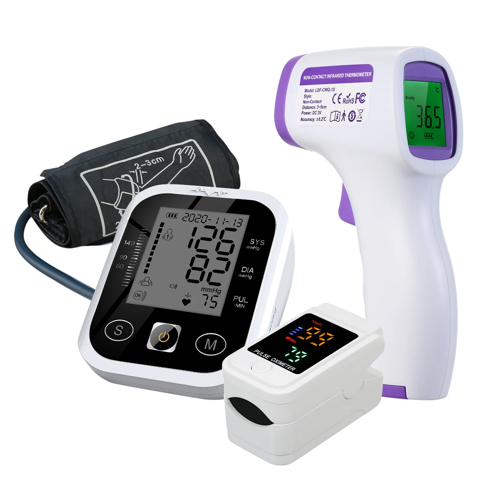 Монитор артериального давления на руку Сфигмоманометр пальцевый Пульсоксиметр кислородный бесконтактный термометр для лба