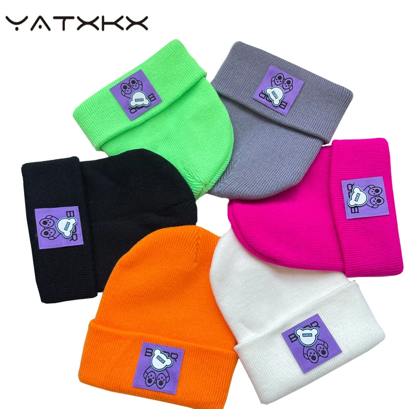 Вязаная шапка с вышивкой YaTxKx, шапка для теплой зимней хип-хоп ун...
