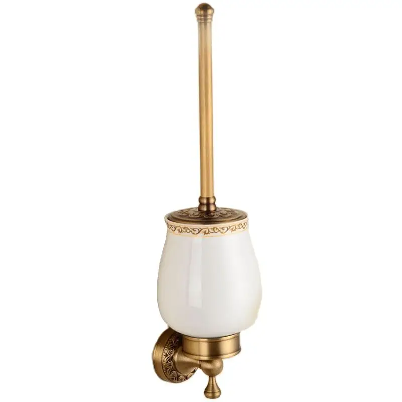 Набор щёток для унитаза с настенным креплением, медный античный бытовой туалет с длинной ручкой, однотонный держатель