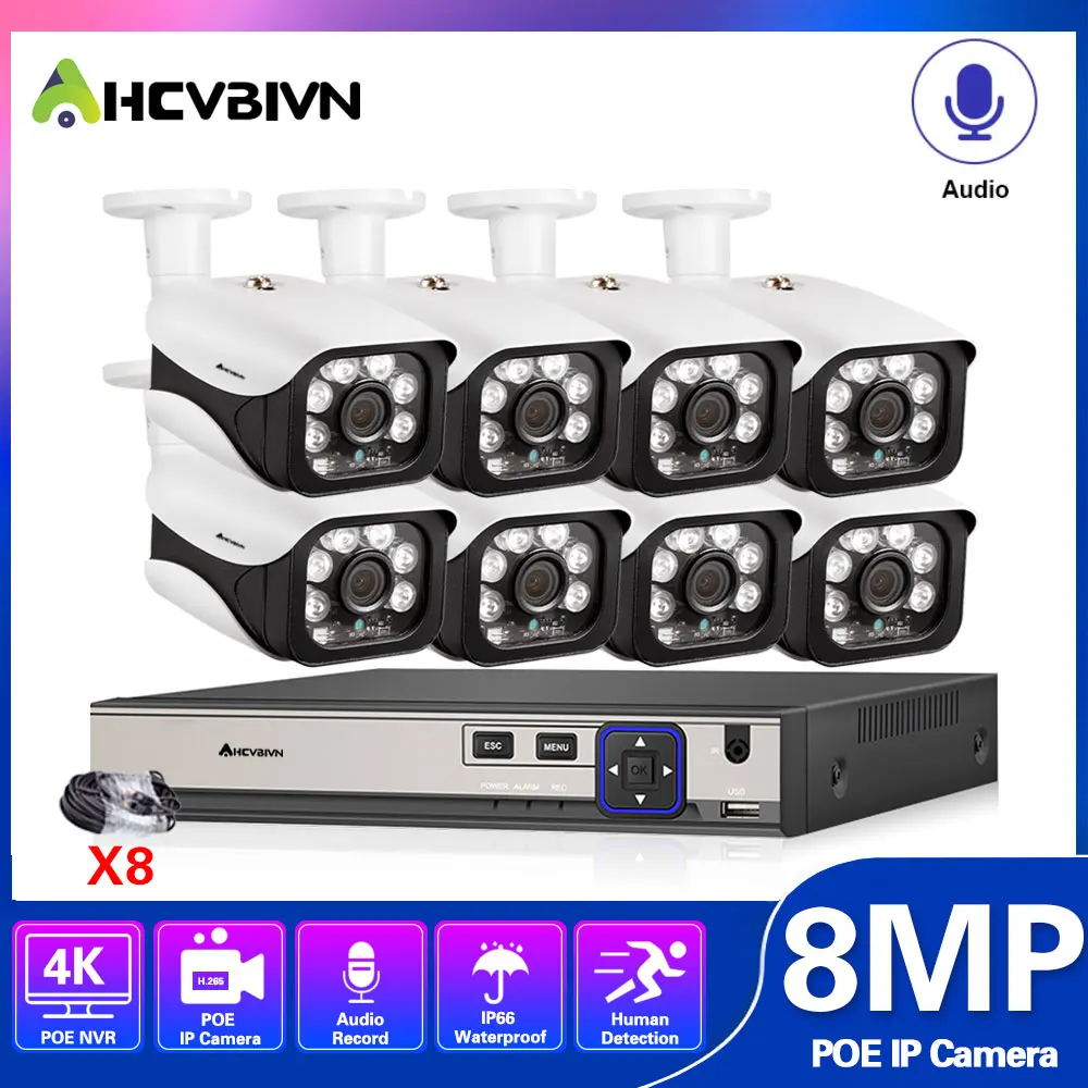 4K Ultra HD 8CH POE NVR Kit H.265 IP-камера видеонаблюдения Система безопасности 8MP Bullet Dome IR Outdoor Night Vision комплекты видеонаблюдения