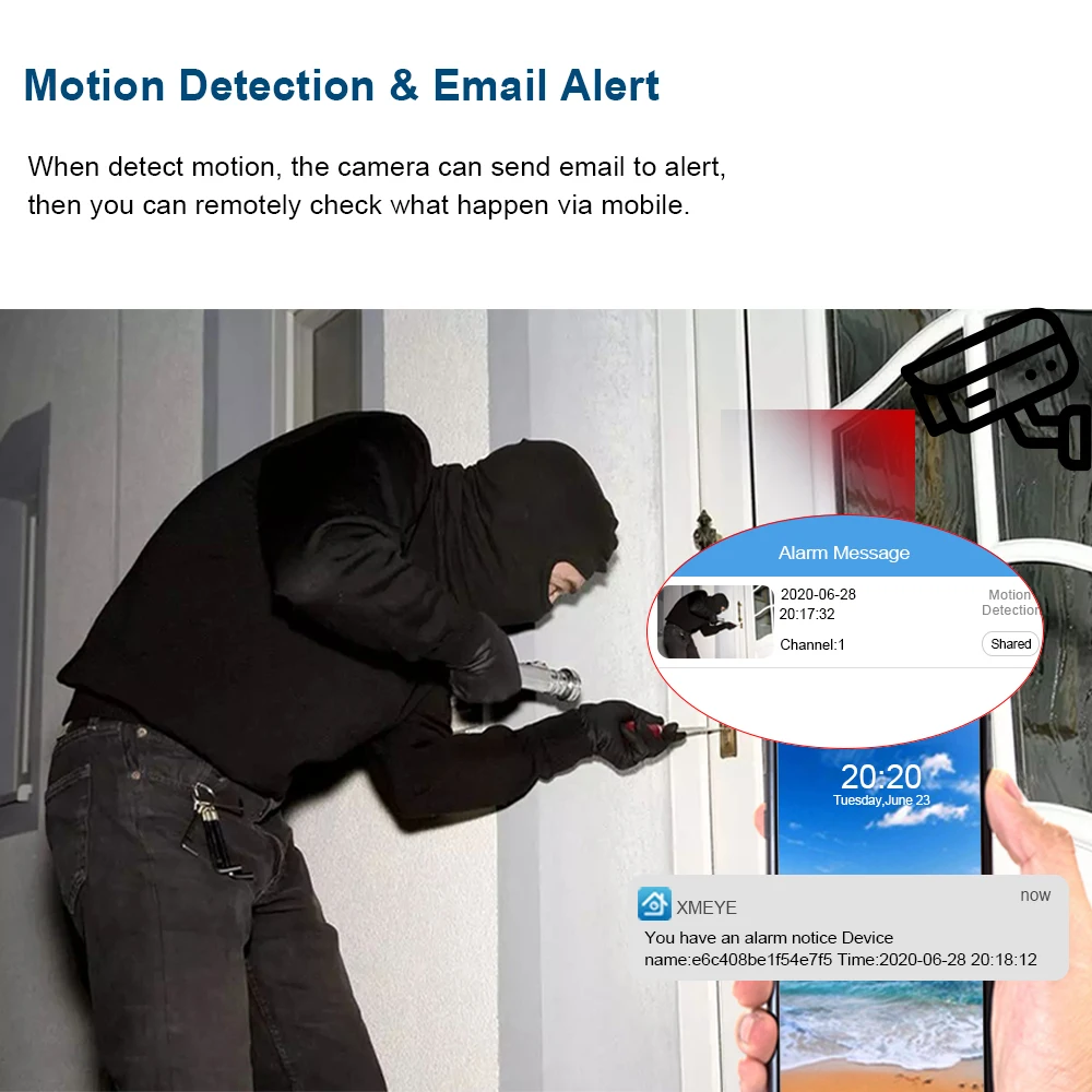 Можно настроить область, которую вы хотите контролировать, когда она срабатывает, она отправит сообщение на вашу электронную почту, вы можете получить информацию из первых рук, независимо от того, когда и где вы находитесь.
