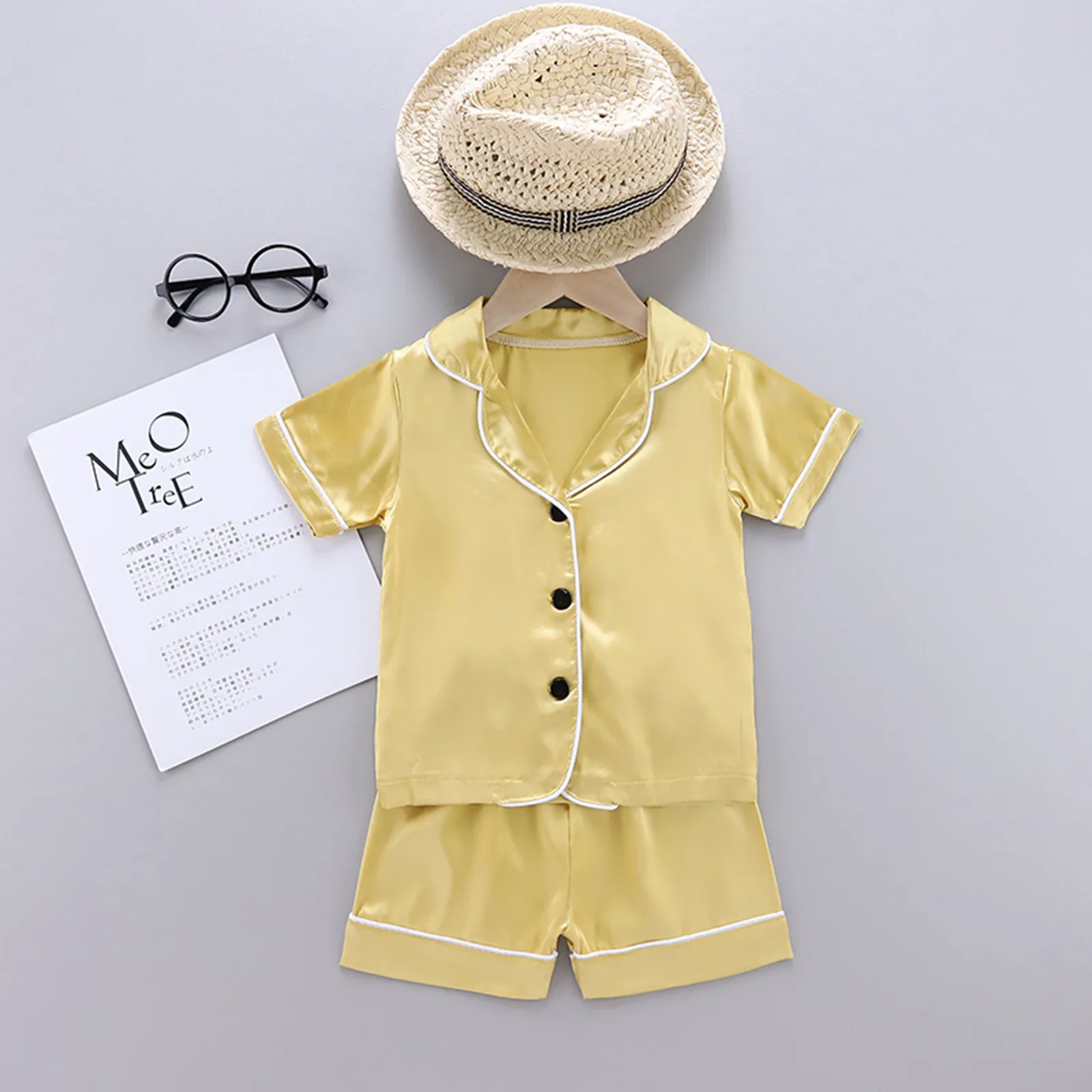 Женская летняя одежда для сна для маленьких мальчиков и девочек, Тонкая шелковая пижама с коротким рукавом, топы и шорты, комплект одежды, пижама 5 *