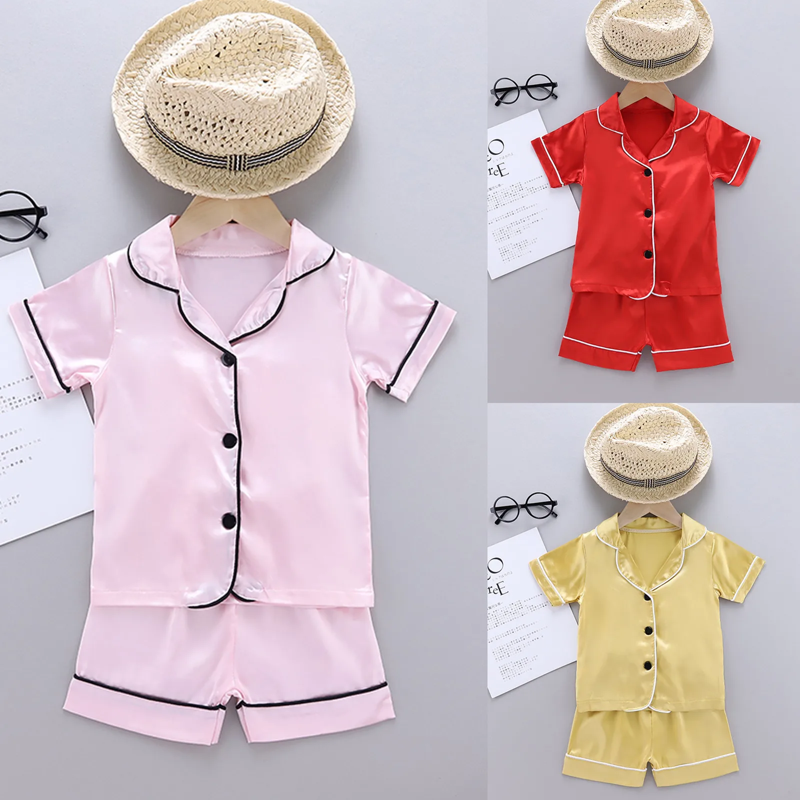 Номер модели1-6Y Summer Toddler Kids Baby Boys Girl Solid Pajamas Ice Silk Thin Sl