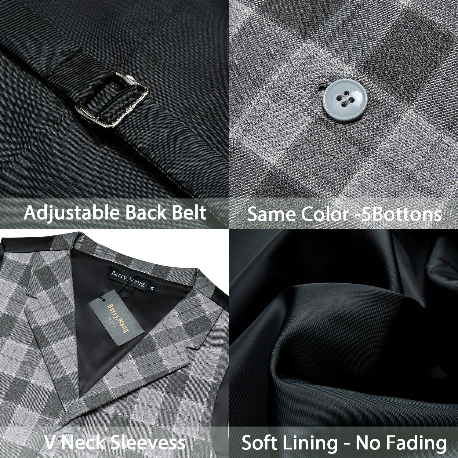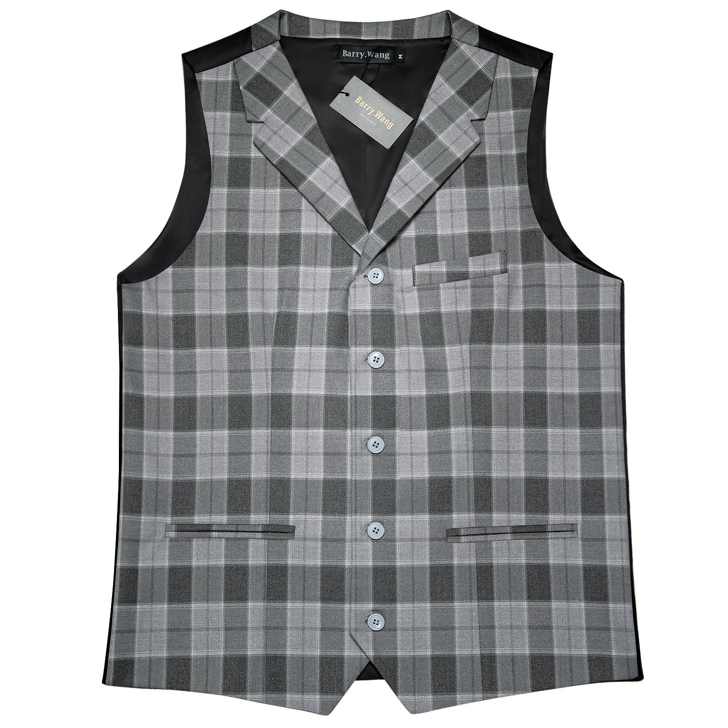 Мужской костюм Barry.Wang, серый клетчатый жилет из смесовой шерсти, приталенный воротник, v-образный вырез, жилет с 3 карманами, галстук, комплект, деловой M-2207 для отдыха