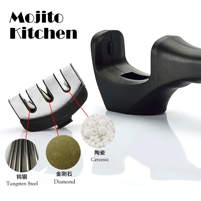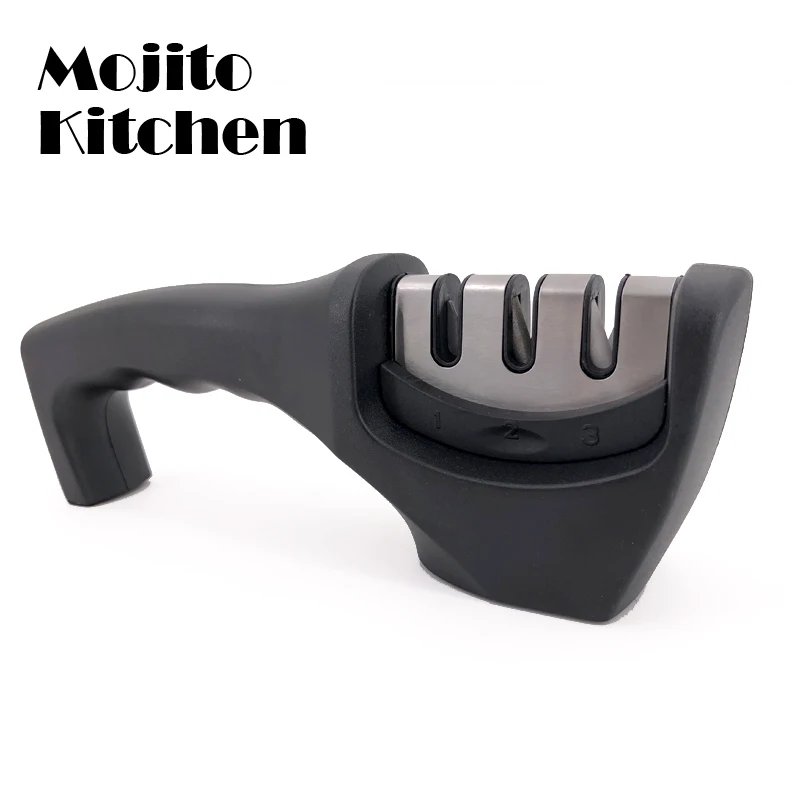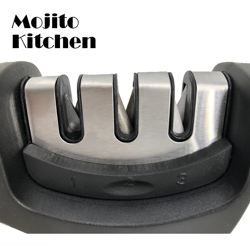 3-ступенчатая точилка для кухонных ножей, профессиональный точильный камень для шлифовки ножей из вольфрама, алмаза, керамики, инструмент для заточки