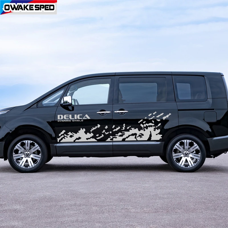 1 комплект наклеек для кузова автомобиля Mitsubishi Delica D5 L400 MPV в стиле внедорожника, спортивные полосы, боковой Декор автомобильной двери, виниловые наклейки