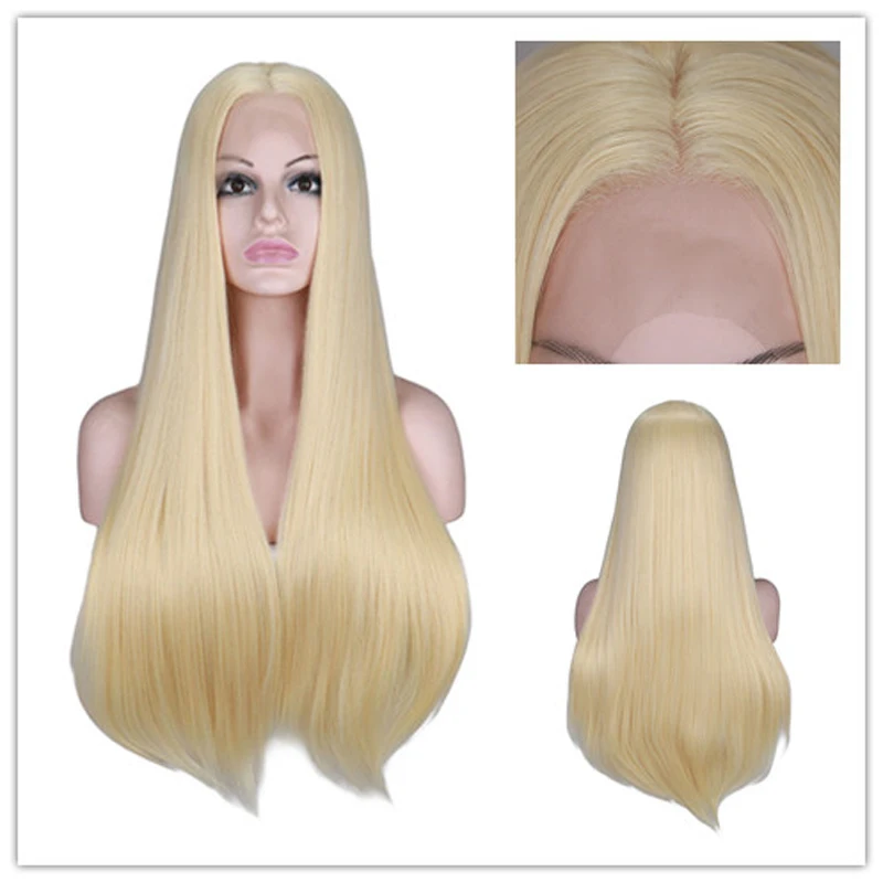 QQXCAIW светлый синтетический кружевной передний парик длинный натуральный прямой термостойкий парики на каждый день для женщин