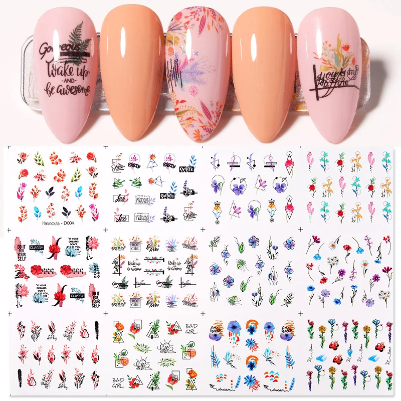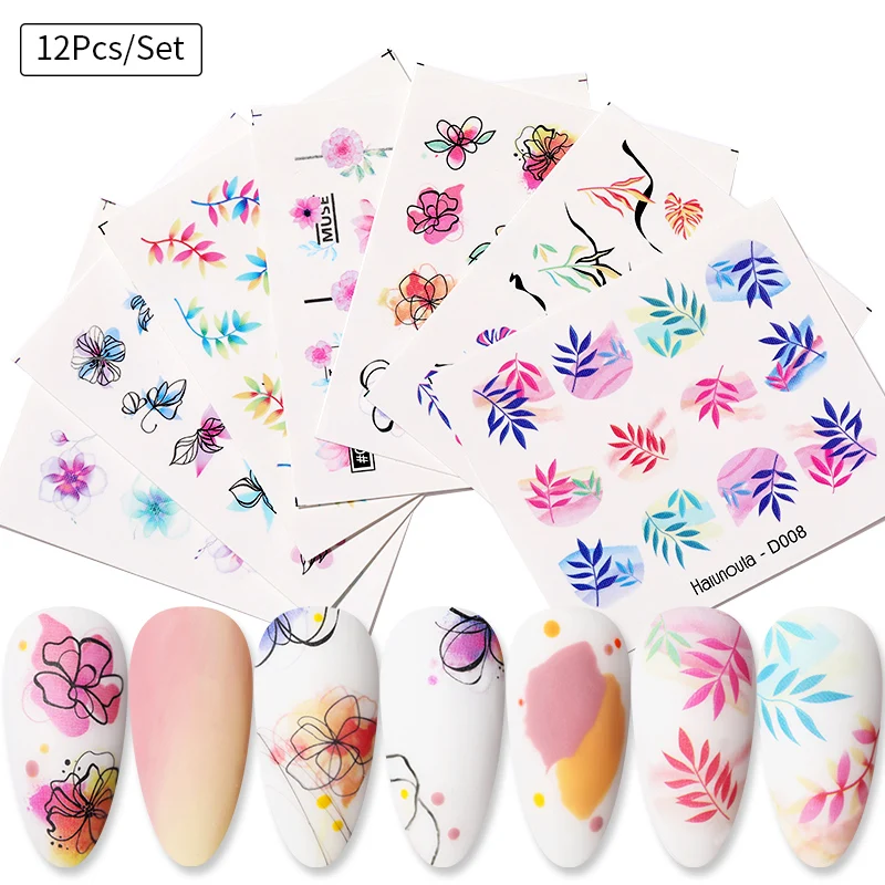 12 шт./лот песня Весны серии дизайн ногтей Stiker 8 цветочный узор переводные наклейки 2021 красочные слайдеры маникюрные украшения
