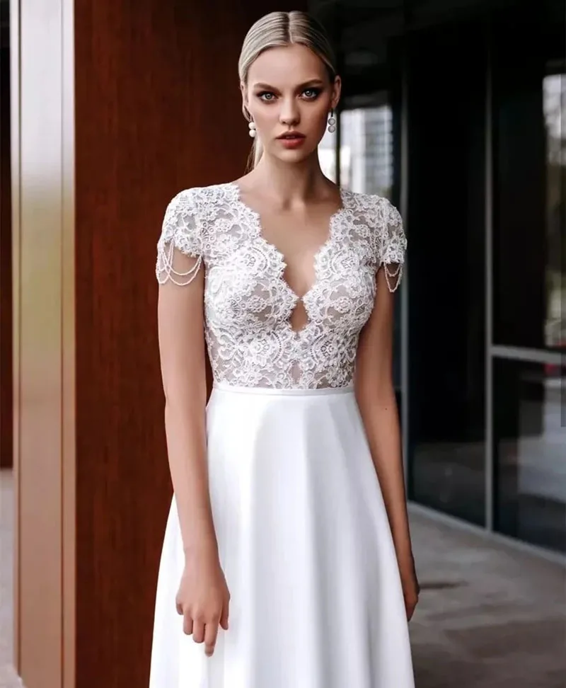 Кружевное свадебное платье, с V-образным вырезом, с короткими рукавами, 2021