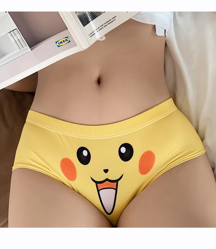 Трусы женские бесшовные с заниженной талией и принтом Пикачу