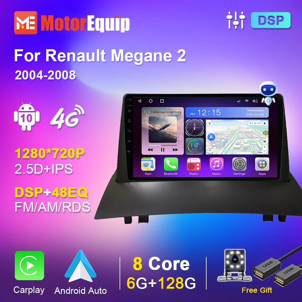 Автомагнитола на Android 10 для Renault Megane 2 2004-2008 мультимедийный видеоплеер GPS 2din Стерео DVD с рамкой Android Авто Carplay