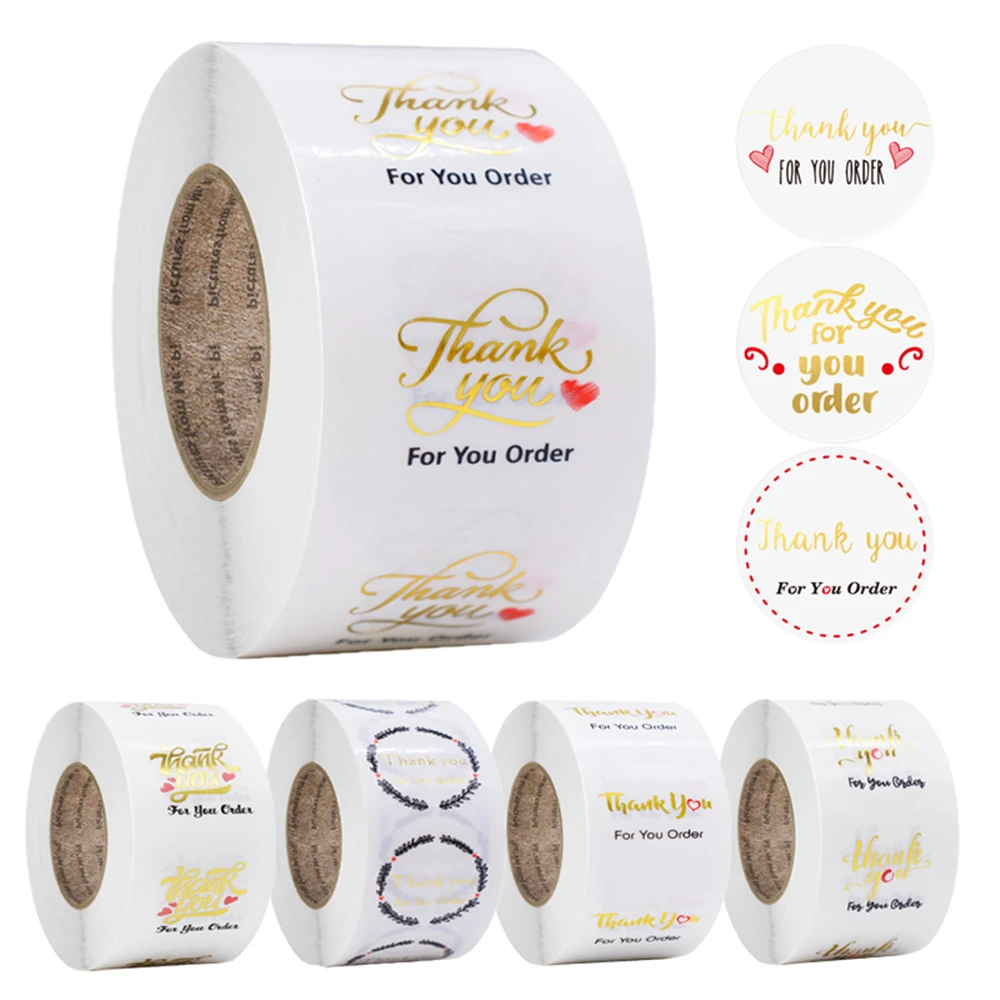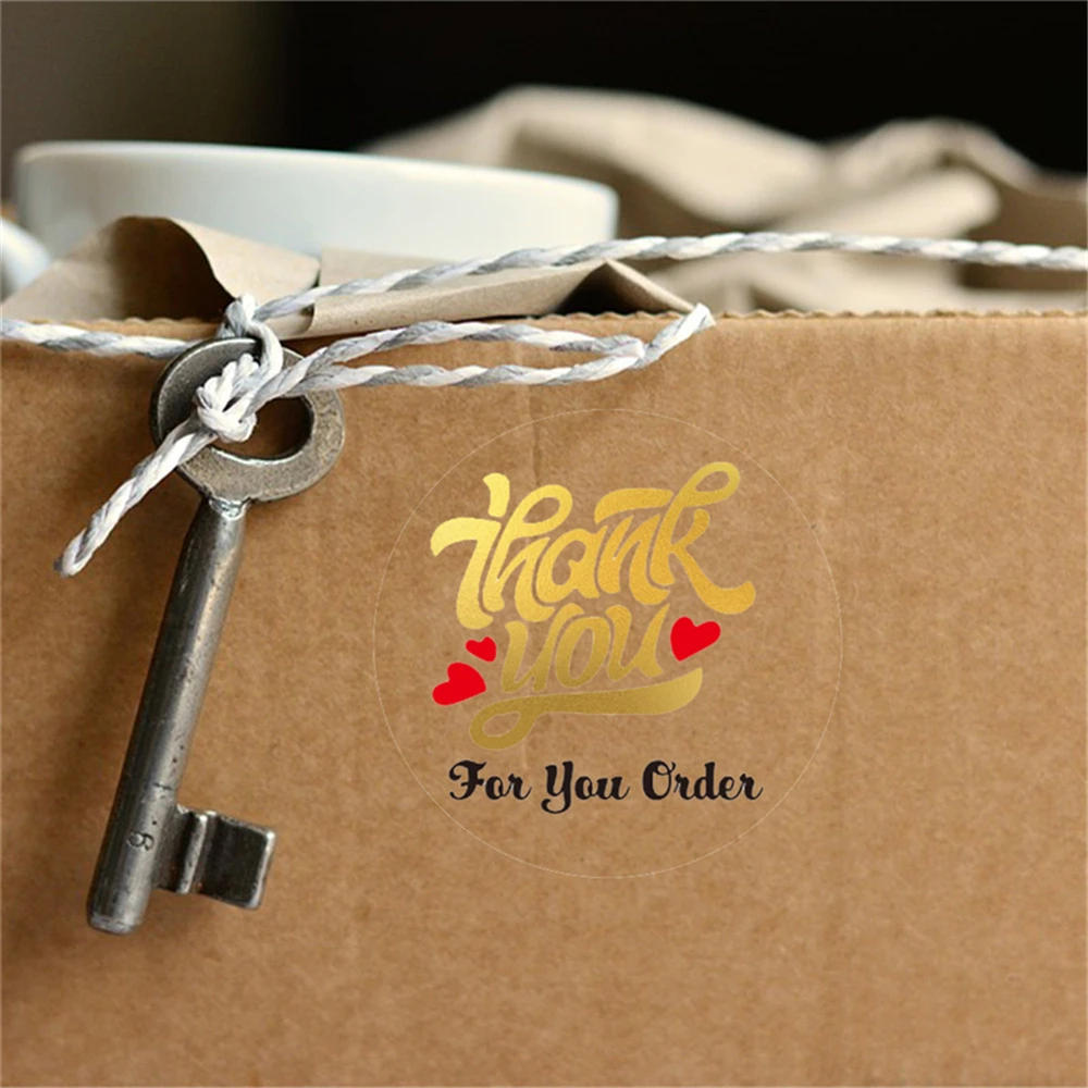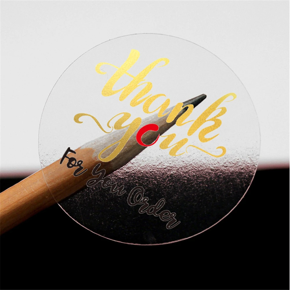 500 шт., прозрачная Золотая фольга, спасибо за заказ, наклейки, 1 дюйм, круглые этикетки для свадебных красивых подарочных открыток, этикетки для запечатывания конвертов