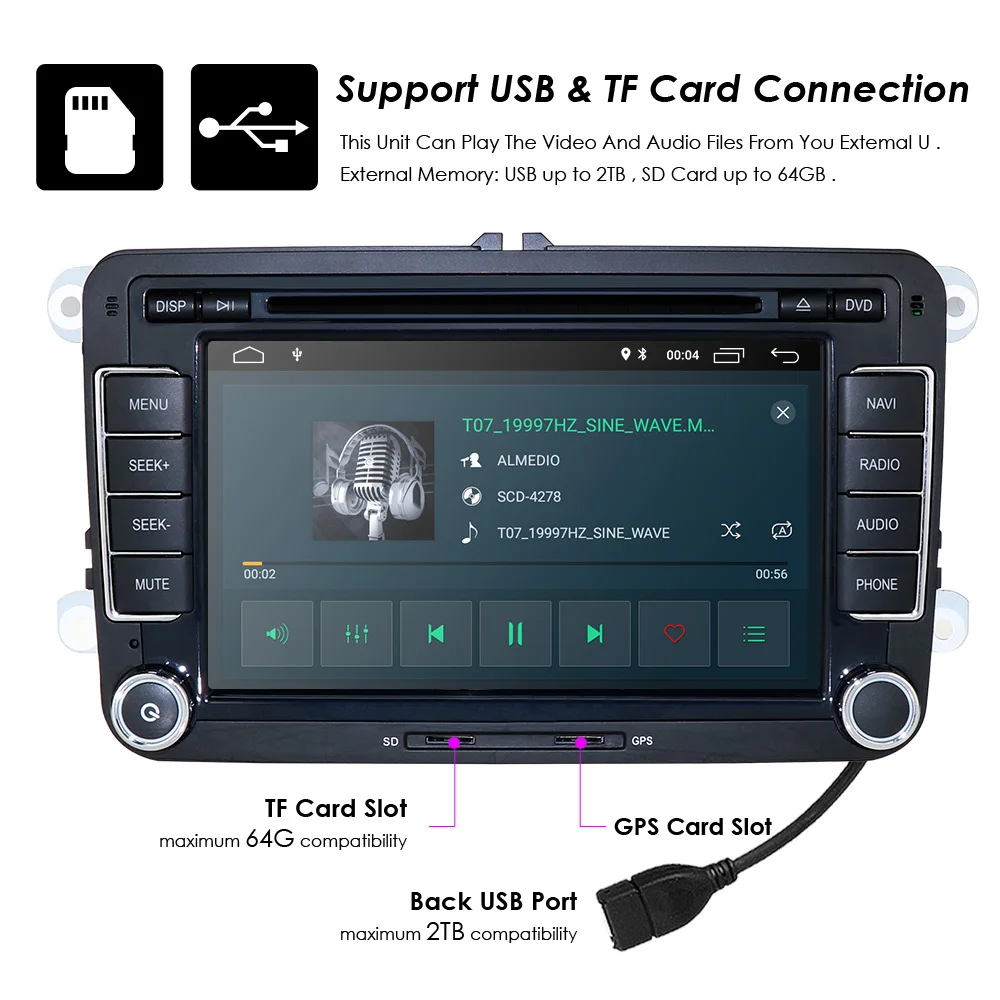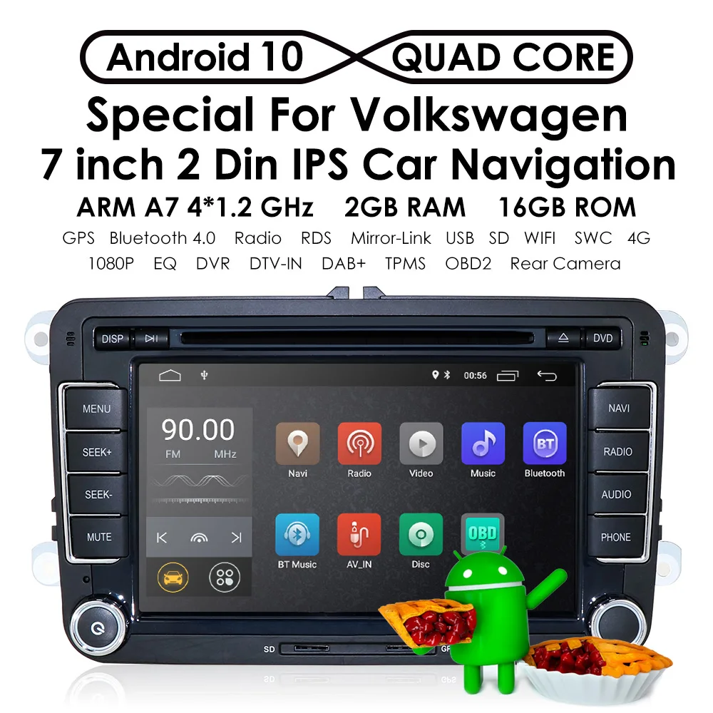 Автомагнитола 2 din, Android 10, GPS, мультимедийный плеер для VWVolkswagenGolfPassatb7b6SkodaSeatOctaviaPoloTiguan, DVD, RDS, DVR