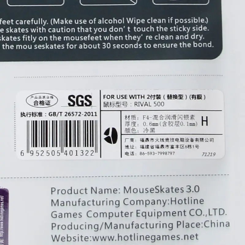 OOTDTY2 комплекта горячей линии игры мышь ноги мышь коньки Gildes для steelseries Rival 500Совместимость с: Rival 500 Gaming MouseГорячие линии игры Компьютерная игровая мышь ноги/конькиОсобенности продукта:Когда-нибудь уставал от того, что ваша мышь не скользит достаточно гладко?Время, чтобы изменить ноги мыши для этого дополнительного скольжения, чтобы увеличить производительность в игре.-Высокое качество! Настоятельно рекомендуется!-Специальные высокополимерные композиты.-Характеристики не клея, высокая гладкость и высокая износостойкость.-Уменьшение трения между мышкой и коврик для мыши, вызванного движением, достичь эффекта обслуживания.-Это значительно увеличит гладкость между мышкой и коврик для мыши после использования, позволит вам испытать ощущение свободного полета.-Работа коньков для мыши настолько умышленная и тщательная, что она позволяет избежать случайных повреждений коньков для мыши.-Вся серия клеевой линии изготавливается по собственному производству Hotline Games. После того, как он используется после того, как наклеивается на мышь в течение длительного времени, он все еще может быть отделен полностью без дефектной резинки. Описание товара:Основная информация о продукте:-Продукт для игр горячей линии-Идеально подходит для мыши-Соревнование -- F4 SilverСоревнование -- новый фирменный F4 серебристый обработанный ПТФЭ для обеспечения плавного скольжения, чем обычный ПТФЭ, плавное скольжение на ощупь и прослужит дольшеУровень соревнований подходит для профессионального игрового игрока.0,6 мм уплотненный сменный тип, для замены оригинальных ног мышиМатериал: тефлон (PTFE)Количество: 2 комплекта в упаковкеПримечание:Перед использованием коньков для мыши удалите оригинальные. Не увеличивайте расстояние между мышкой и коврик для мыши, чтобы предотвратить воздействие чувствительности мыши.Держите коврик для мыши в чистоте во время ежедневного использования, избегайте царапин на концах мыши из-за пыли.Посылка включает в себя: (без розничной упаковки посылка)2 комплекта x оригинальные коньки для игр с горячей линией для игровой мыши steelseries Rival 500